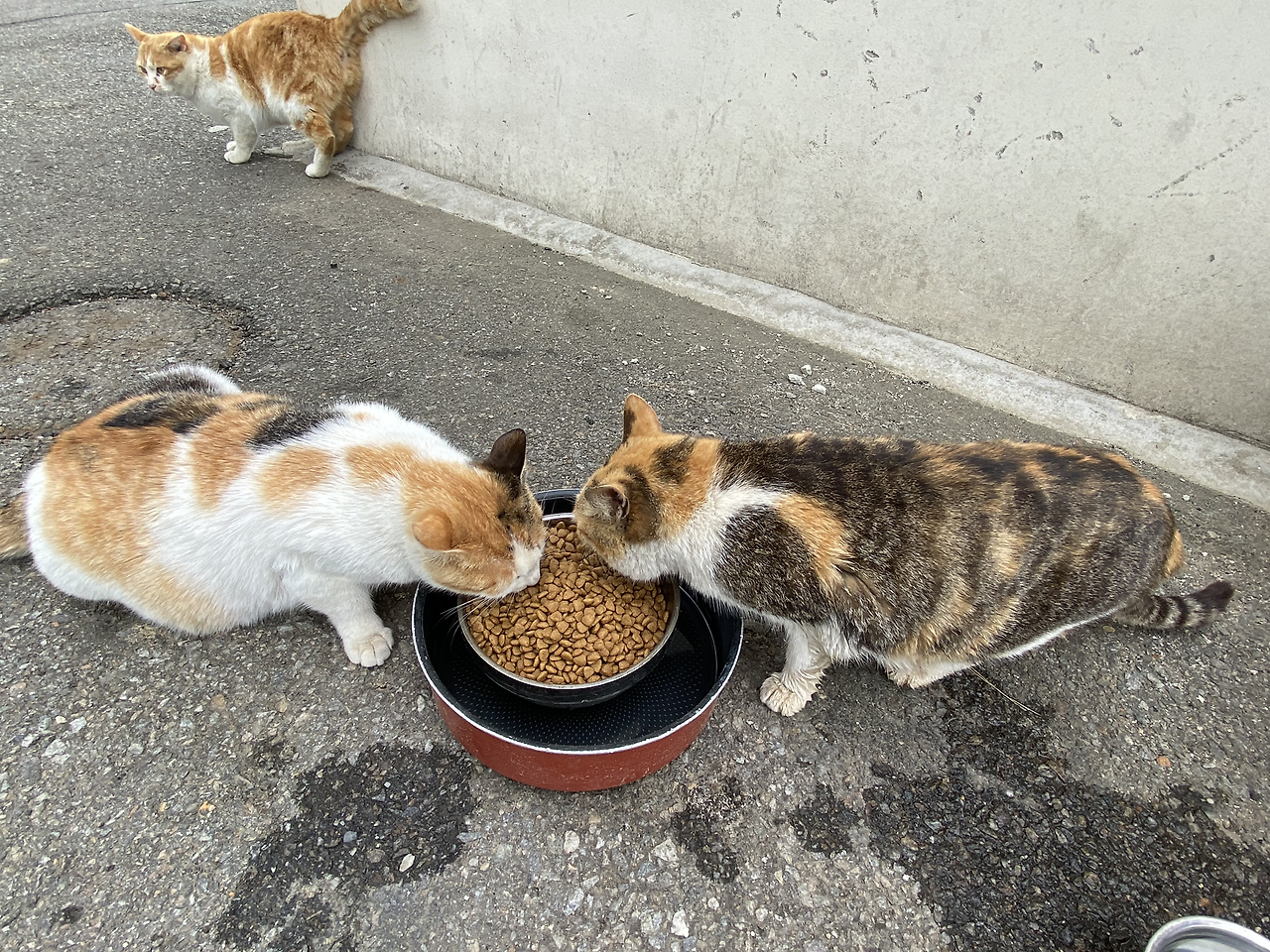 세 마리가 나란히 밥 마중을 나올 때 미소가 절로 지어진다. 누구 하나만 빠져도 왜 안 보이나 걱정부터 앞선다.