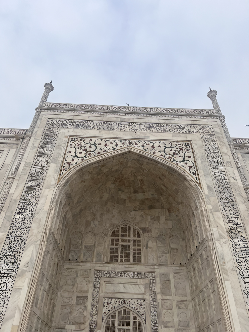 타지마할은 기대에 나름 부합하는 큰 규모였다. 사실 다른 관광지들이 더 기억에 남는다. 그렇지만, 타지마할은 다른 건축물에서는 찾아볼 수 없는 타지마할만의 매력을 지녔다. 가까이에서 타지마할을 음미하면, 섬세한 하얀빛의 대리석이 가장 먼저 눈에 들어온다. 하얀빛의 대리석에 새겨진 조각은 어느 하나의 모양도 같지 않고 정성 들여 조각한 섬세함이 묻어난다. 타지마할의 정면은 우리가 일반적으로 아는 위와 같은 모습이지만, 측면은 다른 건축물이라고 해도 속을 정도로 다른 분위기를 자아낸다.