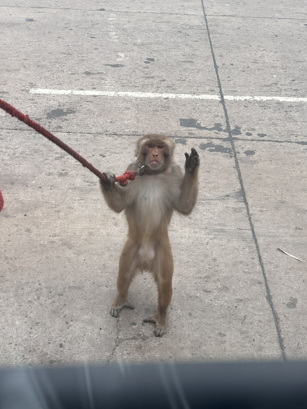 재롱 피우며 돈을 달라는 아이들, 갓난아이를 안고 구걸하는 여인들, 묘기를 부리는 원숭이가 인도의 차도를 차지한다. 아그라로 향하는 버스에서 처음 원숭이를 맞이했는데 그 묘기가 마치 서커스 같았다. 손도 흔드는 여유를 지닌 아주 늠름한 원숭이였다.