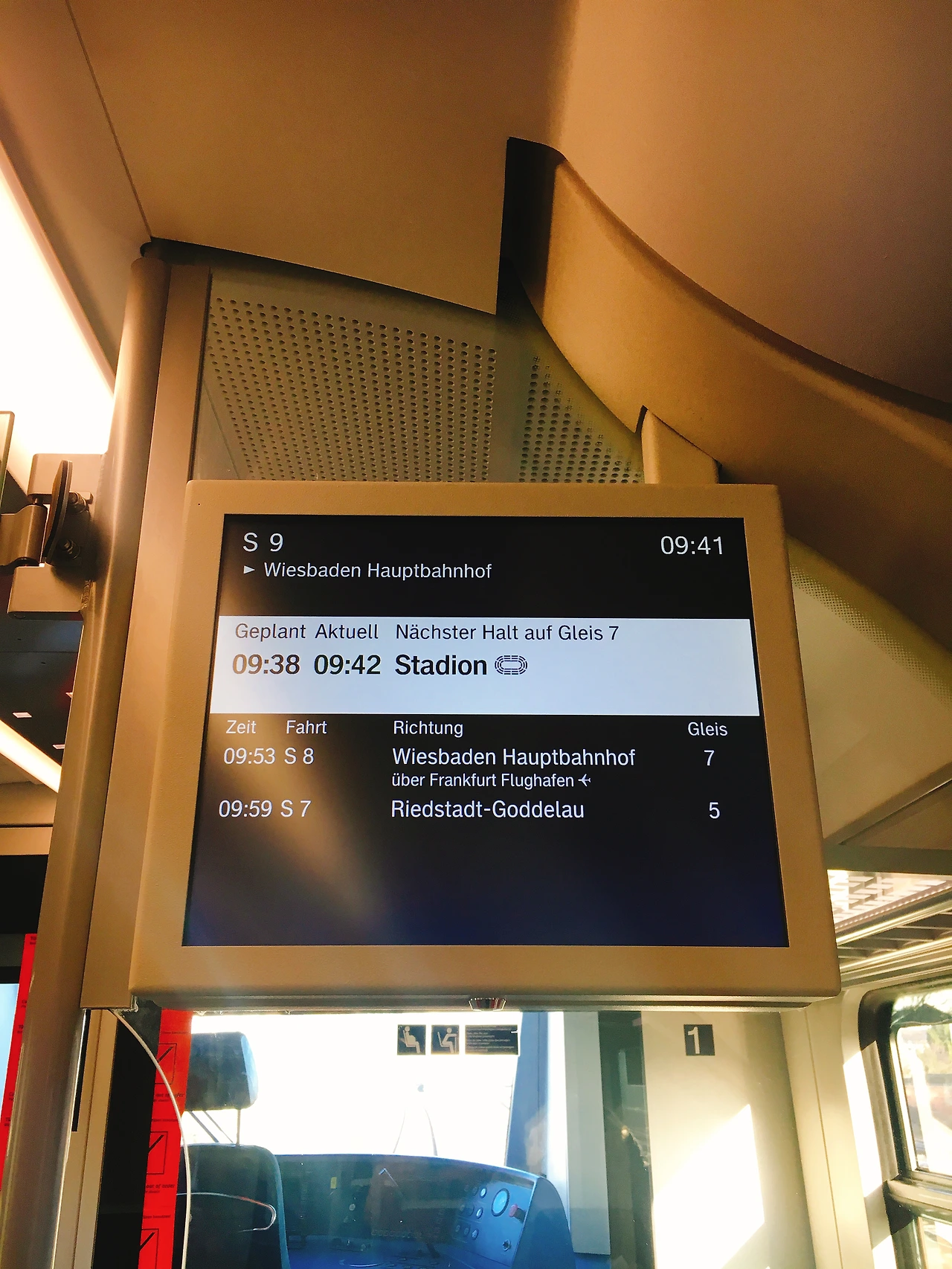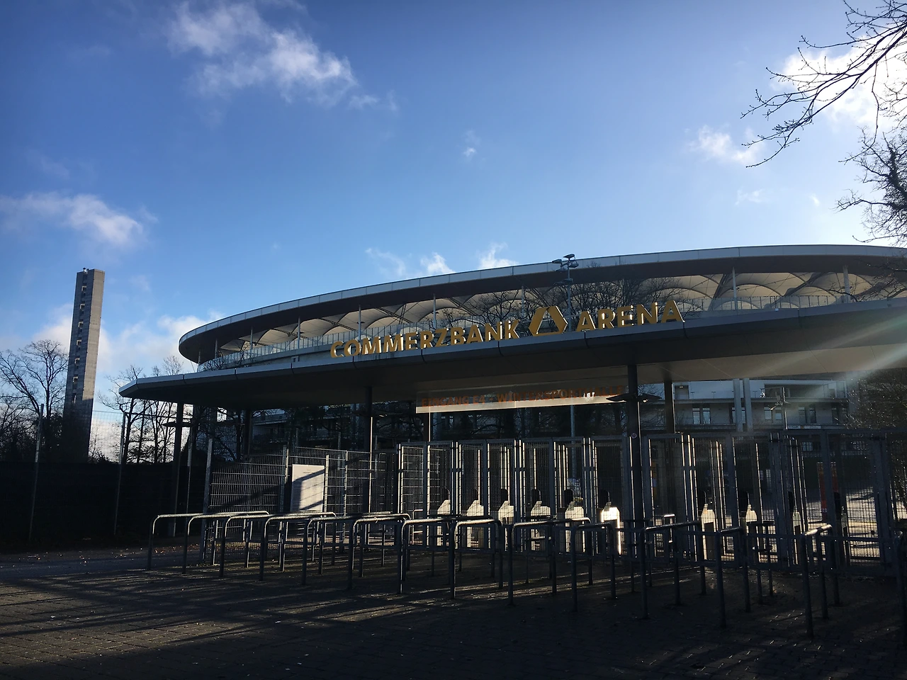 그렇게 짧은 프랑크푸르트 시내 관광을 마치고 아인트라흐트 프랑크푸르트의 홈 경기장, 코메르츠방크 아레나 (Commerzbank Arena) 로 향했다. 경기장이 있다는 역까지는 프랑크푸르트 중앙역에서 크게 어렵지 않게 찾아갈 수 있었다. 처음 타본 독일의 전철은 깨끗하고 한산했다. 드디어 열차가 Stadion(경기장) 역으로 진입한다는 표시가 보이고, 독일에서 마주할 첫 축구장에 대한 기대로 가슴이 두근거렸다.