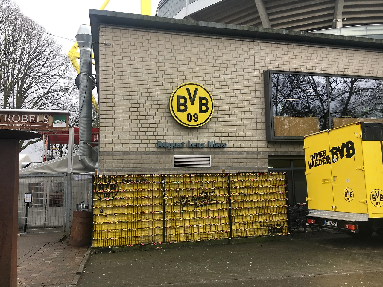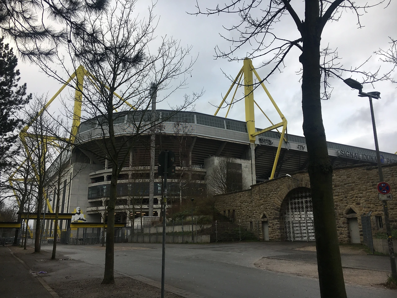 다음으로 찾은 곳은 독일 축구 최고 인기팀 중 하나인 보루시아 도르트문트의 홈 경기장, 지그날 이두나 파크였다. 도르트문트 중앙역에서 U-Bahn을 타고 베스트팔렌(경기장의 옛 명칭이다) 역으로 가 조금 더 걸었던 것으로 기억한다. 찾아가는길이 어렵지는 않지만 헷갈리기 쉬워 충분히 알아보고 가기를 추천하다. 경기장은 기대했던 것처럼 거대했다. 유럽에서도 크기로는 손에 꼽히는 경기장이다보니, 그 규모에 압도당했다. 팬샵 역시 아기자기한 노란색으로 가득 채워진 2층 규모의 단독 건물이었다. 나는 영어 투어 시간에 가지 못해 독일어 투어를 미리 예약해 두었는데, 정해진 시간이 되자 팬샵에서 가이드와 함께 투어를 출발했다.