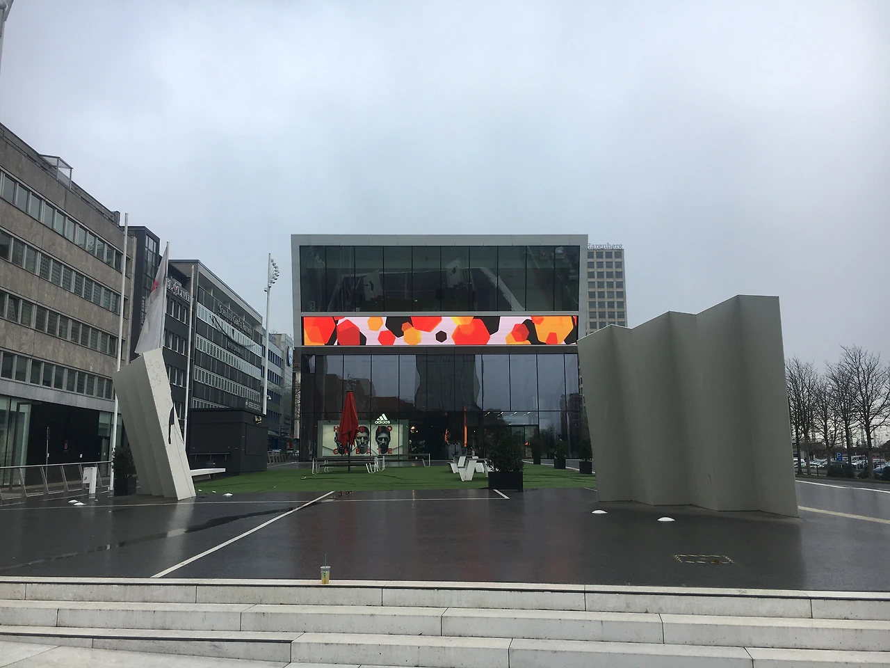 그렇게 숲길을 건너 코메르츠방크 아레나에 도착했다. 경기장을 생각보다 웅장했다. 경기가 있는 날 숲길에서부터 경기장까지 사람들이 들어찬 모습을 떠올리니 절로 기분이 좋아졌다. 사진에 보이는 방향 반대편으로 천천히 걸어가니 아인트라흐트 프랑크푸르트 훈련장과 팬샵, 박물관이 보였다.
