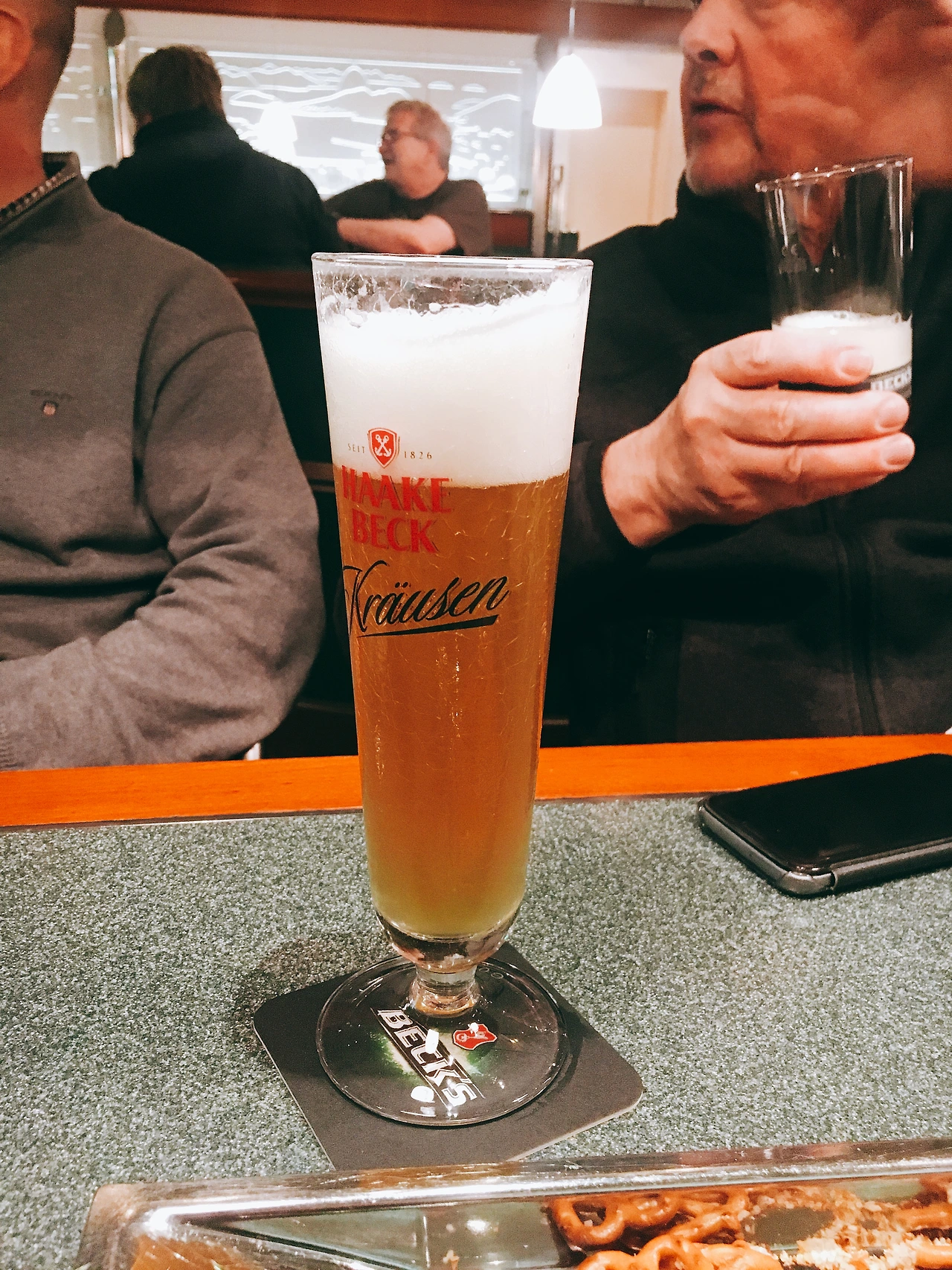 기분 좋게 투어를 마치고 볼프스부르크에 가기 전, 꼭 먹어보고 싶었던 독일식 족발 슈바인 학센을 먹으러 역 앞 식당에 들렀다. 처음엔 혼자라 부담도 좀 되었지만 여기까지 왔는데 꼭 먹어보고 가야지 싶어서 용기를 내기로 했다. 학센은 우리나라 족발과는 전혀 다르게, 겉은 바삭바삭하게 튀겼고 안은 촉촉한 살코기가 있는 맛이 일품이었다. 무엇보다 여기서도 추천을 받아 한잔 마신 맥주가 기가 막혔다. 맥주 한잔 만으로도 여행지를 독일로 선택하길 잘했다는 생각이 들었다. 그렇게 배불리 먹고 서둘러 볼프스부르크로 돌아가 기분좋게 하루를 마무리했다. 축구와 맥주로 가득 채운 브레멘의 하루는 성공적이었다.