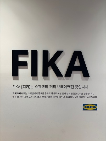 카페벽에 부착된 FIKA와 그 의미를 읽으며,