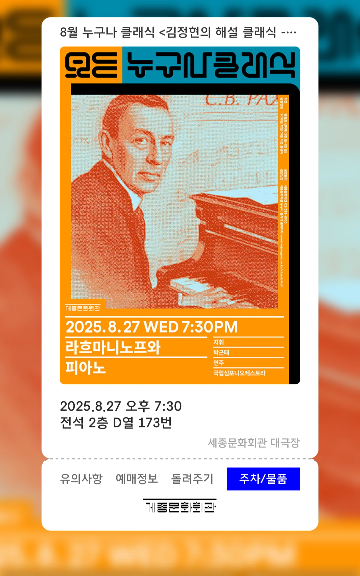 오늘의 연주는 라흐마니노프 곡이었다. 공연을 마치고 돌아오는 길에 첫째는 “초등학교 때보다 커서 들은 오늘 연주가 훨씬 좋았다”고 말했다. 어렸을 때 몇 번 가지 못했던 공연의 느낌을 기억하고 있는 것도 놀라웠고, 지금은 왜 더 좋은지 묻자 “클래식 음악은 클라이맥스 선율이 참 좋다”고 답했다. 작곡가도, 연주가도 잘 모르는 아이지만, 단순히 선율을 즐긴다는 그 사실만으로 충분했다. 공연 제목처럼 누구나 클래식일 수 있는 이유다.