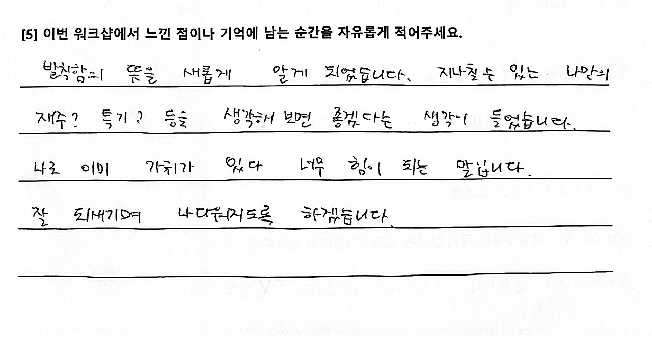 ・ 워크샵이 감성적으로는 충분히 울림을 주었지만,