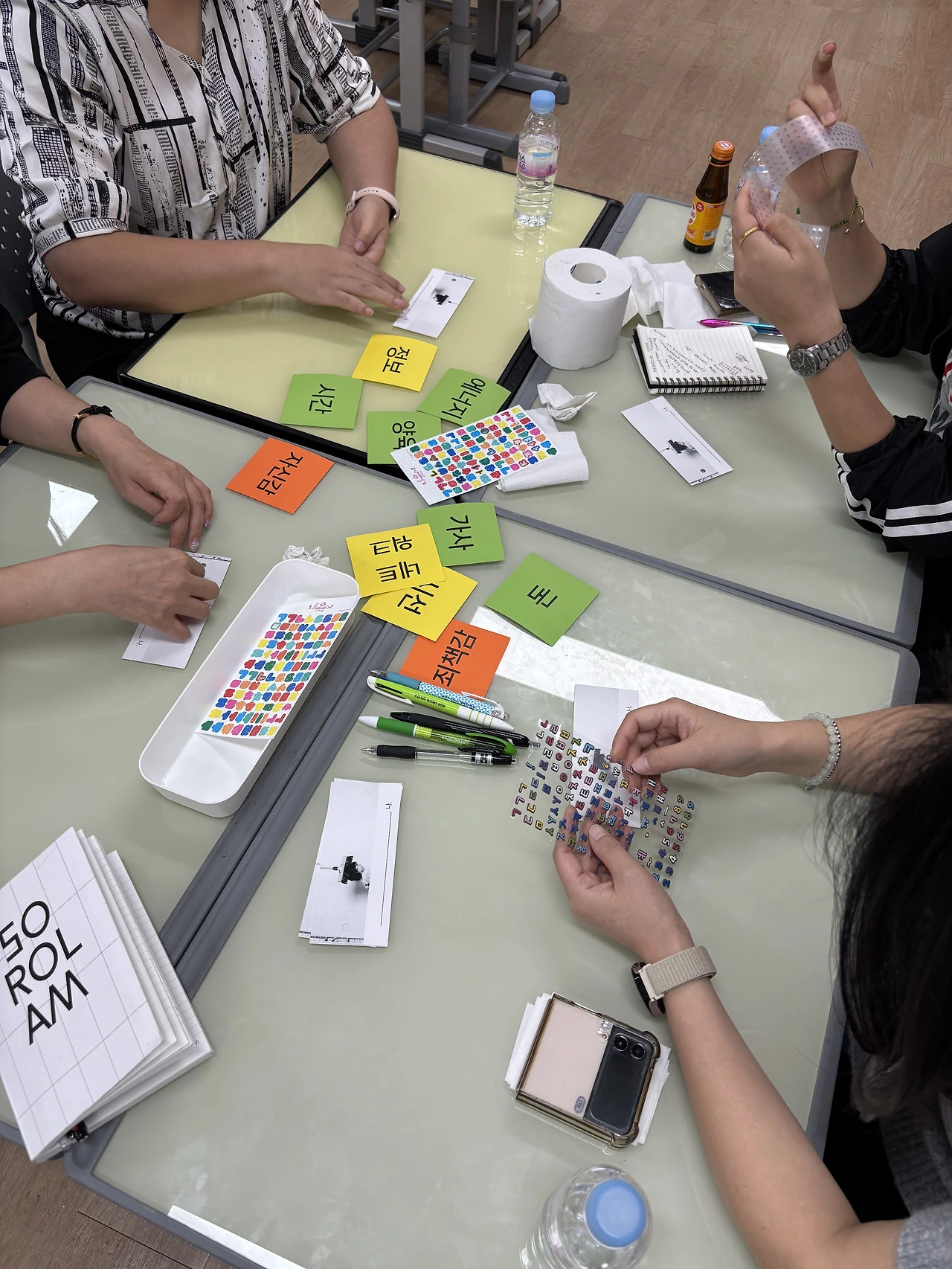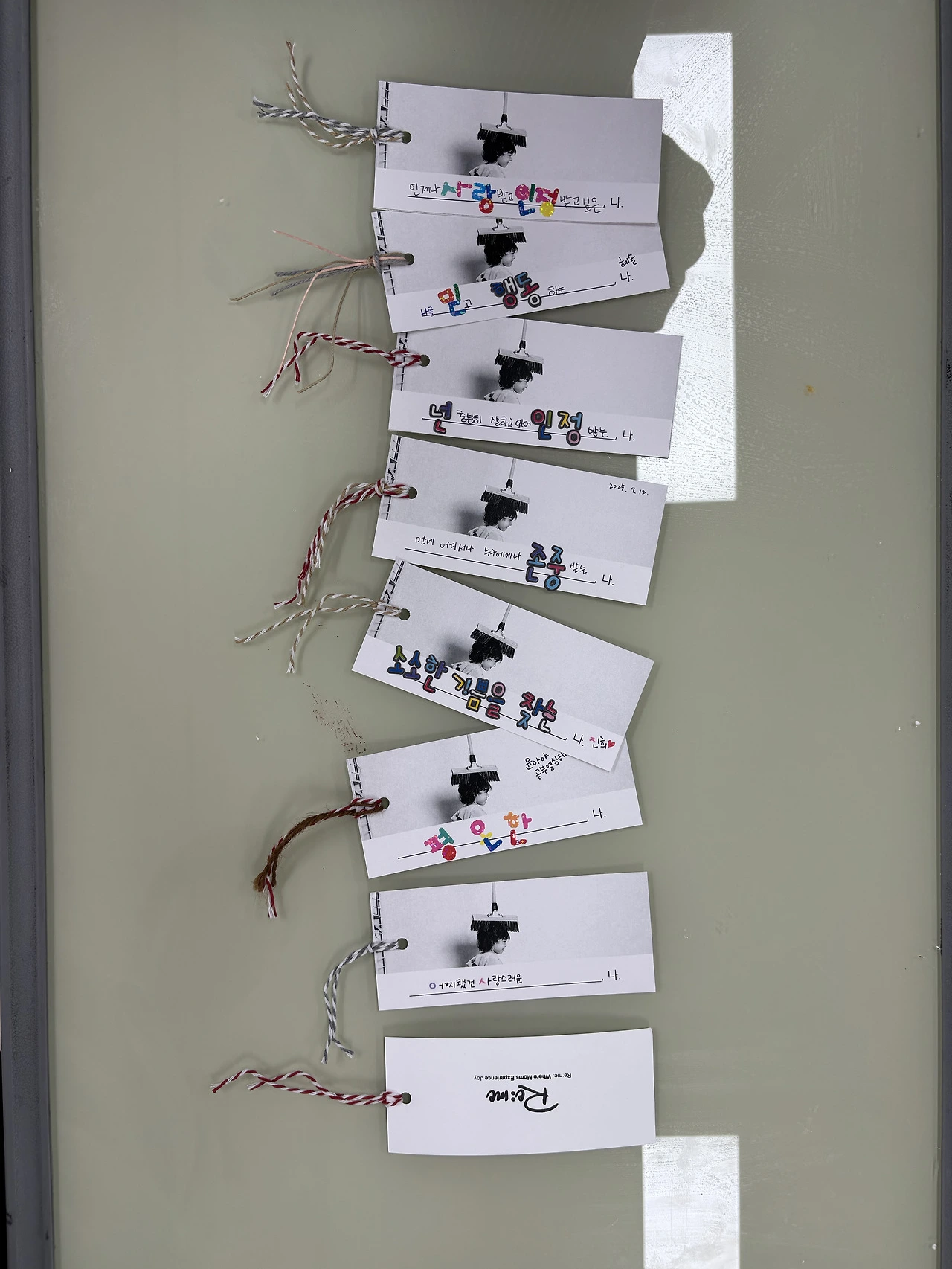 오늘의 두 시간은 ‘강의’가 아니라 ‘서로의 마음을 비추는 시간’이었다. 눈앞에서 엄마들이 울고, 웃고, 고백하는 모습을 보며, 이 워크샵이 단순한 이벤트가 아니라 누군가의 멈춰 있던 시간을 다시 흐르게 하는 장치가 될 수 있다는 걸 깨달았다. 무엇보다도, 엄마들이 만들며 책갈피 한 장 한 장이 그 자체로 살아 있는 ‘브랜드 선언문’처럼 느껴졌다. 작고 서툴러도, 그것은 모두 각자의 삶에서 건져 올린 진짜 언어였기 때문이다.