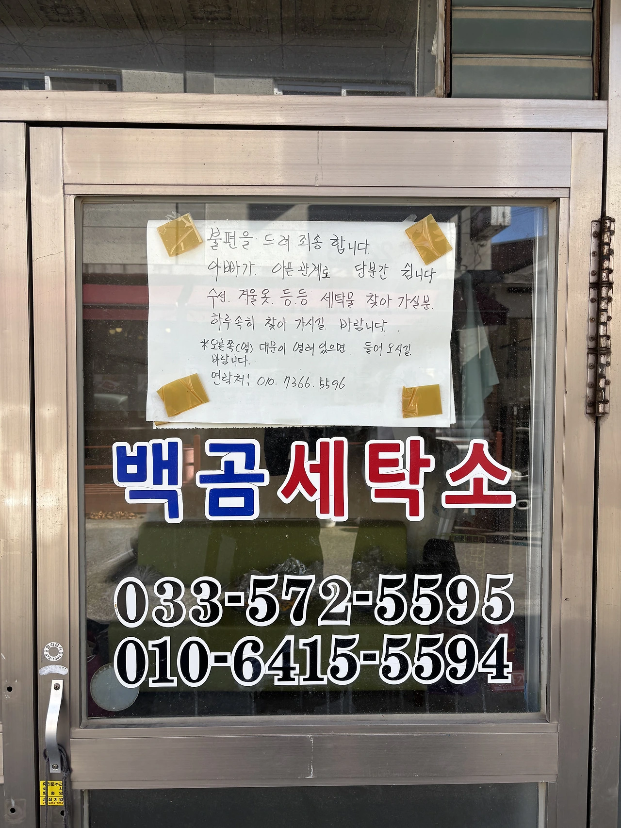 한 장의 종이에서 시작된 따뜻함이 하루의 온도를 더 온화하게 만들었다. 오늘 내가 삼척에서 가장 오래 바라본 풍경은 바다도, 해변산책로도 아니었다. 백곰세탁소 앞, “아빠가 아파 당분간 쉽니다”라고 적힌 오래된 달력지 한 장.그 문장이 묘하게 마음을 붙잡았다.