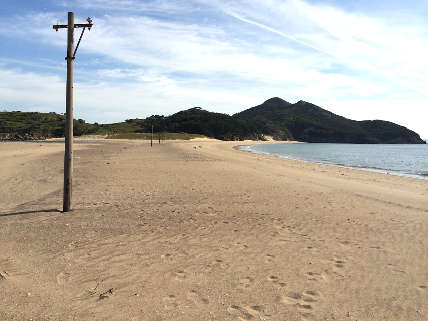 동섬과 서섬을 연결하는 육계사주 위에 전기를 공급하는 전봇대가 설치되어 있다