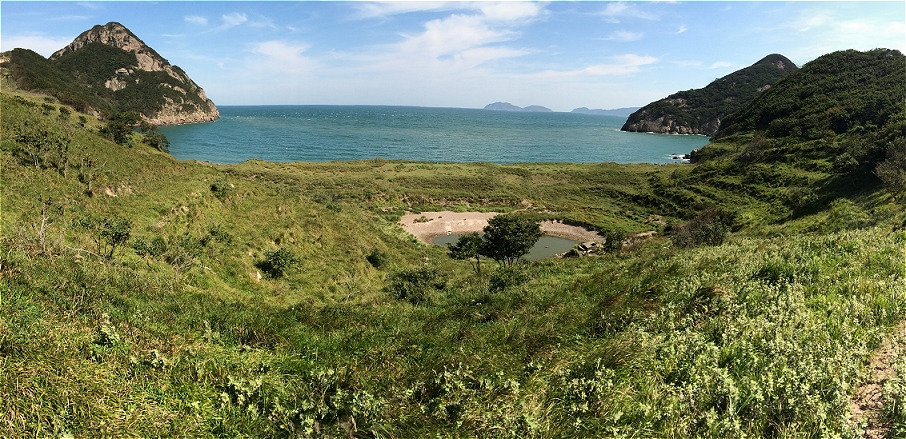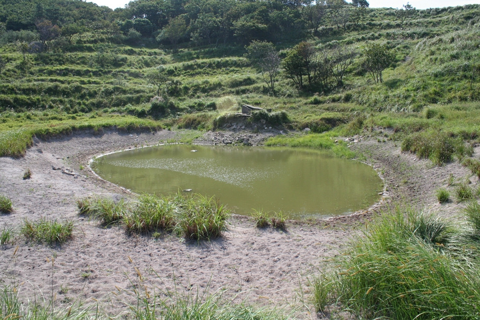 사구뒤에 형성된 사구습지, 담수(민물) 연못으로 뒤에 보이는 계단식농경지에 물을 공급한 것으로 보인다