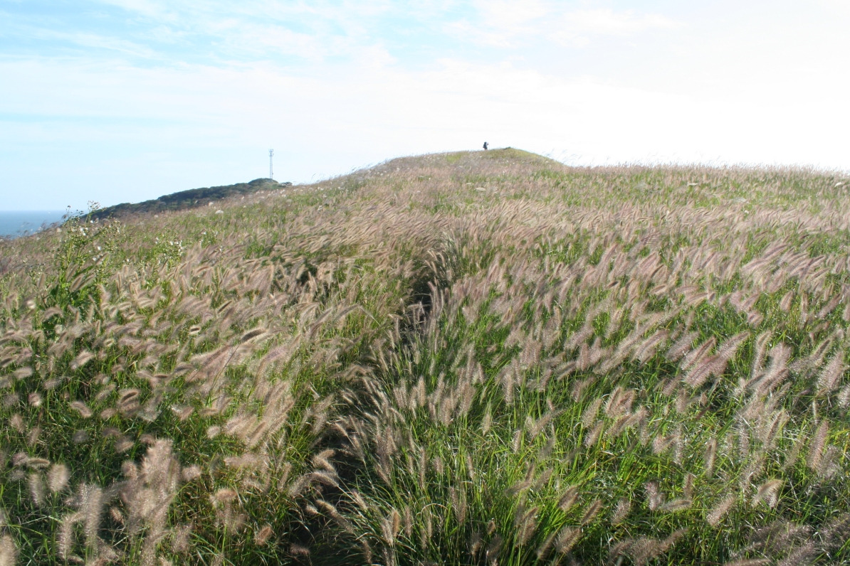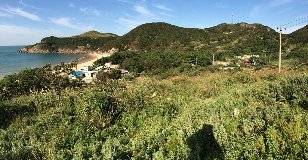 간밤에 바람이 너무 세게 불어 텐트가 펄럭거리는 소리에 잠을 제대로 이루지 못했다. 자다 깨다를 반복하다 일어나니 주위는 이미 밝아졌고 해는 벌써 바다 위에 사뿐히 떠 올라와 있다. 저녁으로 먹다 남은 밥을 끓여 김치와 깻잎으로 대충 떼운 후, 옆 텐트 아저씨와 짐을 꾸려 8시쯤에 개머리 언덕을 떠나 능선을 다시 걸어 내려왔다. 어제와는 달리 맑고 화창한 날씨 때문인지, '이 길이 어제 우리가 걸어왔던 길인가?' 싶을 정도로 아름다워 계속 발걸음을 멈출 수 밖에 없었다. (뭐 물론 내가 좋아하지 않는 손가락 마디만큼 큰 메뚜기, 그보다 더 큰 사마귀, 뱀까지 있었지만 ㅜ.ㅜ) 풍경에 취해 사진을 찍느라 1시간이 넘게 걸려서야 마을로 내려올 수 있었다.