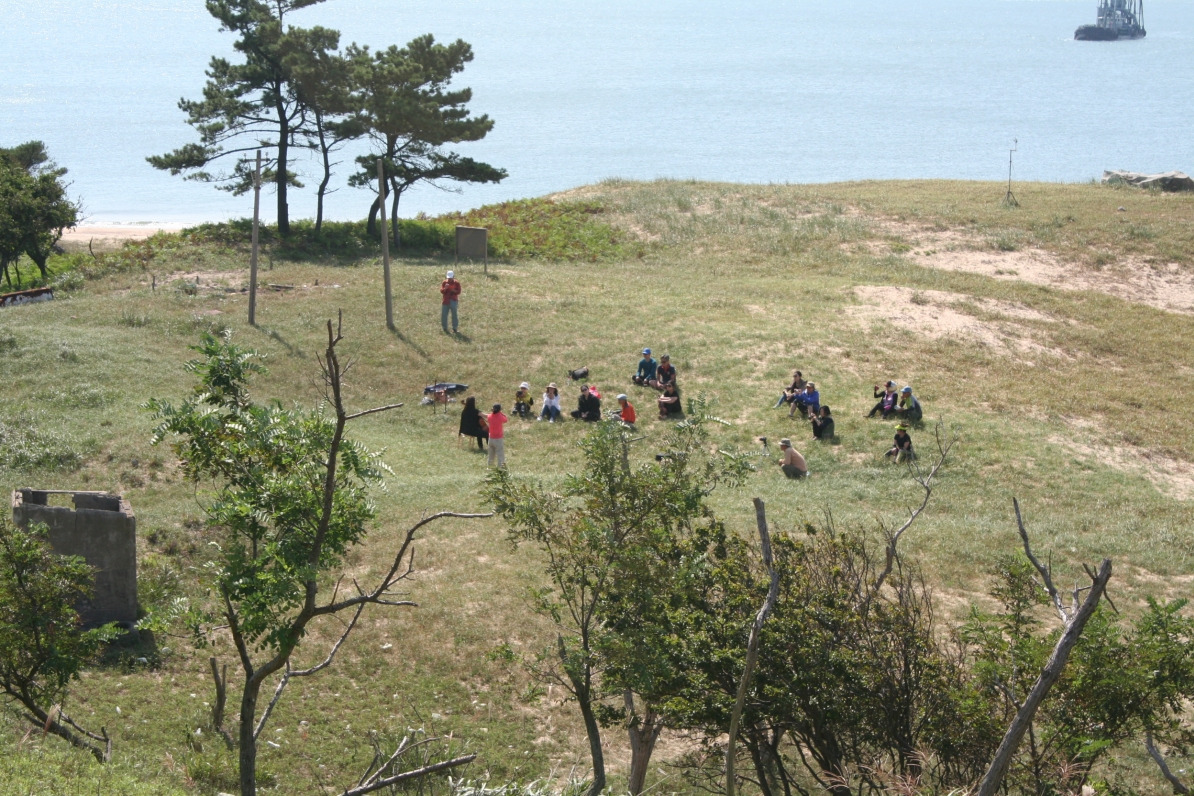 돌아갈 배를 기다리며 배낭에서 빵과 물을 꺼내 모래밭 위에 앉아 간단히 점심을 먹었다. 먼 바다에서 간간히 대포 소리가 들려온다. 함정에서 훈련하는 소리일 것이다. 서해 바다의 긴장은 한 낮 굴업도의 평화와 어울리지 않는다.