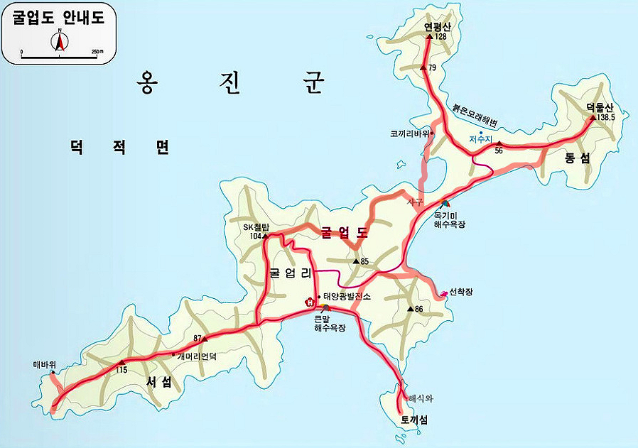 굴업리의 마을 풍경. 대부분 민박업으로 생계를 유지하고 있는 듯 하다