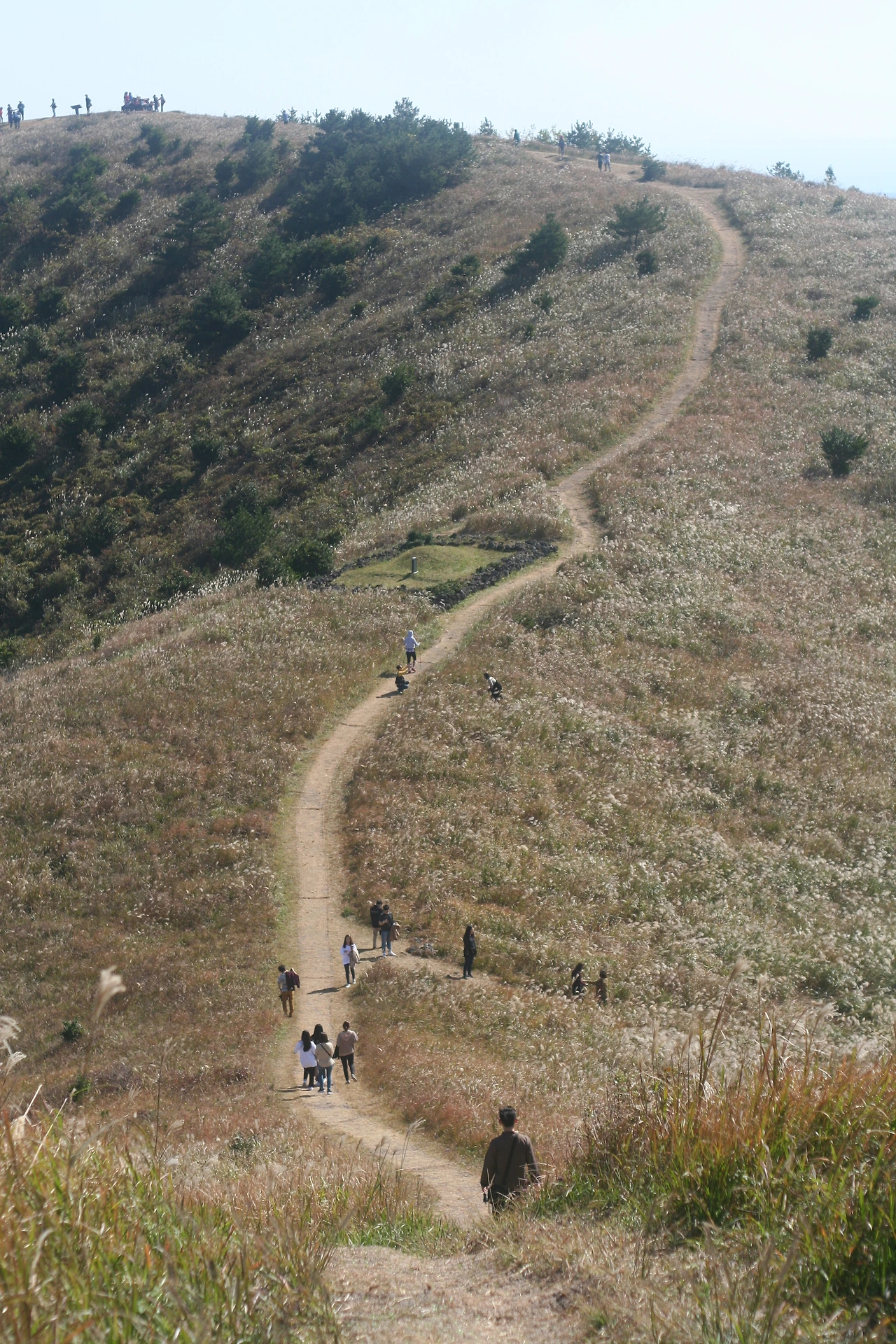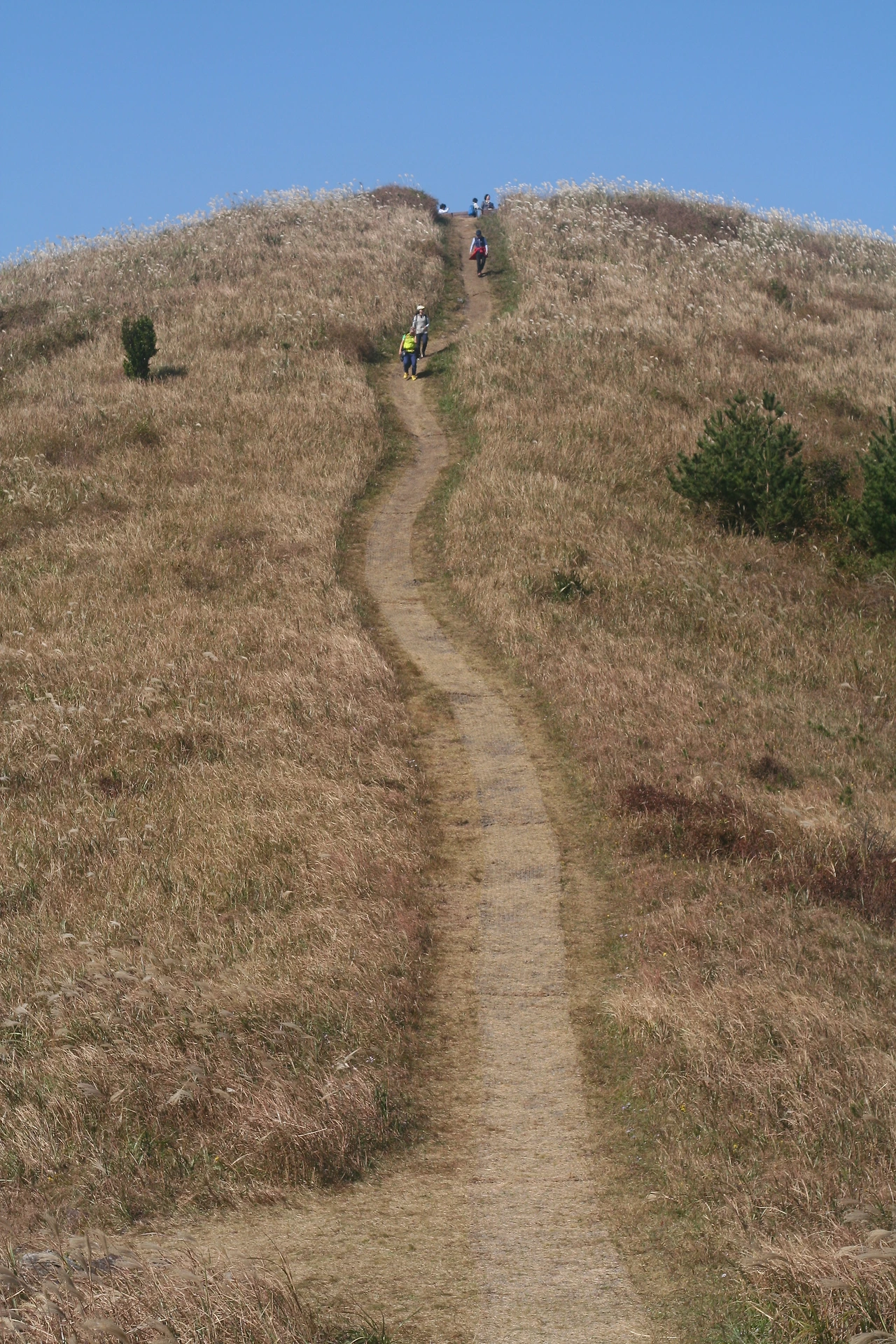 제주시와 서귀포 표선을 연결하는 번영로를 따라 가다 옆 길로 빠져, 자동차 2대가 가까스로 교행이 가능한 시멘트길을 3~4km 따라 가서야 드디어 따라비 오름 주차장이 보인다. 일찍부터 소문을 듣고 찾아온 가을 여행객들이 벌써 오름 꼭대기에 올라가 있는 모습이 보인다. 억새는 오름 아래에서부터 볼 수 있지만 더 멋진 모습은 분화구에 가면 볼 수 있다.