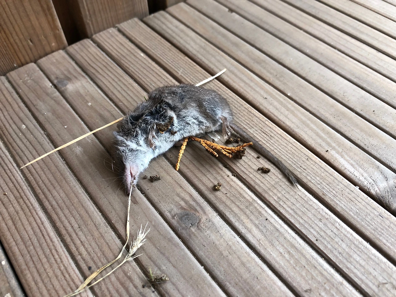 다음날 아침에 일어나 보니 나와 아들이 잠자고 있는 방 앞 툇마루에 쥐 한마리가 예쁘게 올려져 있다. 아침에 청소하다 먼저 본 아내가 괴성을 지른다. 옆집에 물어보니‘고양이의 보은이 아닐까?’ 한다. 보은받을 만한 일을 한 적이 없는데, 그저 신기하다. 지난 밤 우리 이야기를 엿들은 걸까? 그냥 우연이겠지!