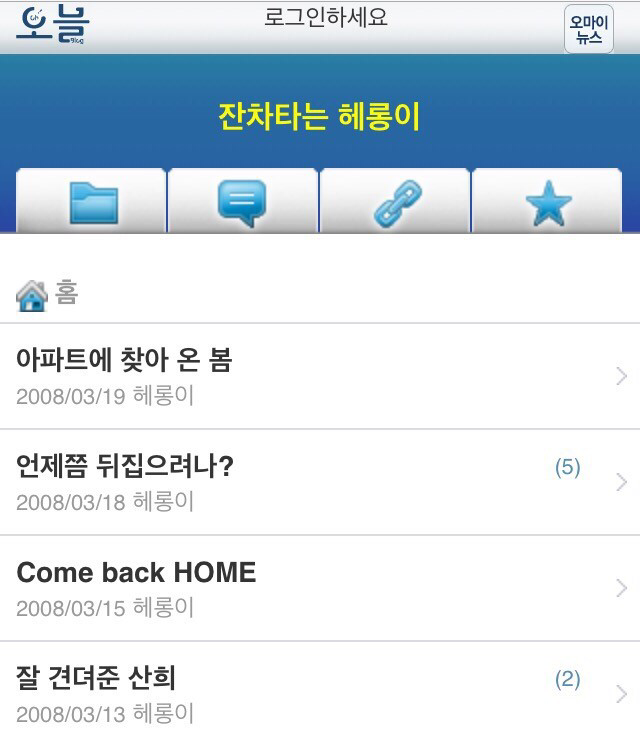 오마이뉴스 블로그에 육아일기 쓰기를 했어요 먼저 블로그에 글쓰기다. 블로그에 매일 글을 쓰다보면 아이가 크는 모습을 눈으로 확인할 수 있어 좋다. 아빠가 육아를 전담하는 경유가 요즘에는 좀 있는 편이지만 당시엔 찾기가 힘들었다. 그래서 온라인 매체인 오마이뉴스 블로그에 글을 쓰기 시작했다. 하루 하루 일상을 사진과 함께 글을 적어 올렸더니 가끔 메인 뉴스페이지에도 올라가고 원고료도 아주 쬐~끔 들어왔다. 신문사에 연락이 와 일주일에 한번 무가지로 배포되는 무가지 신문에도 글이 실리기도 했다. 사실 원고료보다 내 글이 뉴스화면에 보이고 그것에 사람들이 반응해 주는 것이 신기하고 뿌듯했다. 글을 올려놓고 거기에 댓글이 달리는지 매시간 관찰하다 답글해주는 것도 재미있다. 육아를 전담하는 다른 이들과 교류할 수 있는 좋은 창구가 될 수 있어 더욱 좋다.