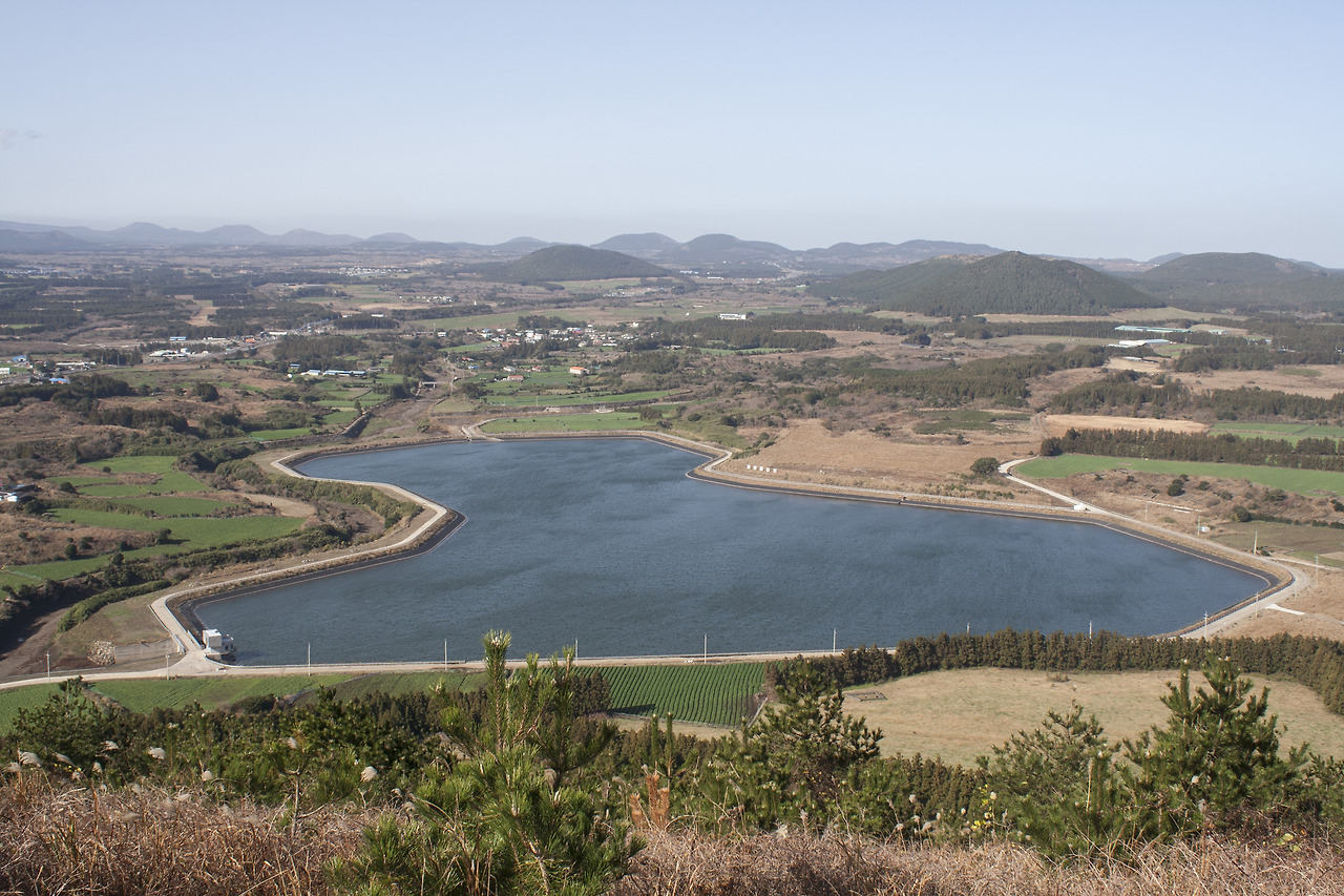 신기했던 건 오름 뒤쪽에 큰 저수지가 만들어져 있다는 거다. 10여 년의 공사 끝에 2015년에 완공된 이 저수지는 제주에서 제일 큰 하천인 천미천 중류에 건설된 성읍 저수지이다.(천미천은 큰 비가 오지 않는 이상 대부분 말라 있다고 입구에서 만났던 할아버지가 이야기해 주셨다.) 제주도는 지질 구조상 물이 지하로 스며들어 물을 저장하기 힘든데어떻게 이런 시설이 가능한지 궁금했다. 자료를 찾아보니 제주도 이외의 지역은 보통 저수지 주변에만 차수막(물을 막는 막)을 설치하는데, 제주는 현무암 지역이라 바닥에도 차수막을 설치해 물이 빠지는 것을 막았다고 한다. 그래서 600억 가까운 큰 세금이 들었다고 한다. 농업을 위한다면 명목으로 거액을 들여 만들었다는 이 시설은 하지만 안타깝게도 올여름 가뭄에 겨우 150 농가에만 물을 공급할 수 있었단다. 농가로 공급하기 위한 시설들이 미비했기 때문이었다. 제주도(혹은 우리나라)의 어이없는 행정 실태다. 결국 건설업자를 위한 것이었나?