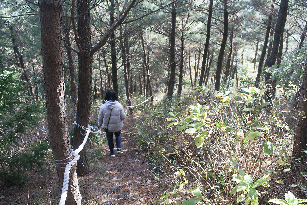 내려오는 길을 조심하라던 할아버지의 조언을 흘려 들었는데 곧 그 이유를 알게 되었다. 경사가 급한데다 어제 내린 비 때문에 수분을 머금은 코코아 매트는 더 미끄러웠다. 아내도 나도 미끄러져 엉덩방아를 찧고 말았다. 등산화를 신지 않고 운동화를 신은 걸 약간 후회했다. 영주산에 오를 계획이라면 방심하지 말고 설치된 줄을 잡고 조심조심 내려와야 할 듯하다.