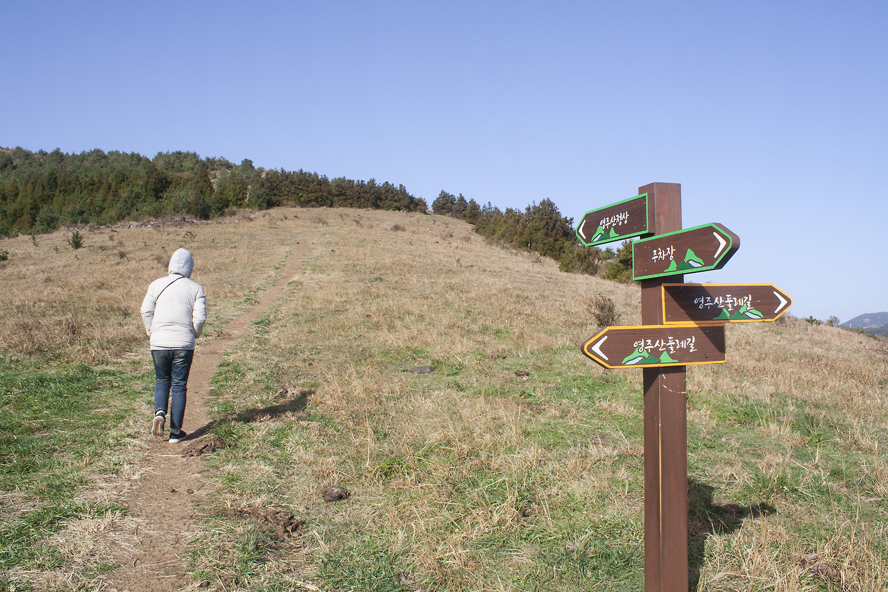 제주의 오름들은 다양한 이름으로 불린다. ‘00오름’이 가장 많지만 ‘00 메(뫼)’, ‘00악’, ‘00봉’ 등으로 불리는 경우도 많다. 그리고 ‘00 산’ 이라고 불리는 오름들도 있는데, 오늘 찾아간 영주산이 대표적이다. 사실 이름의 차이가 오름의 특성과 모양의 차이에서 유래된 것은 아니고, 지역마다 다르게 불렀을 뿐이라고 한다.