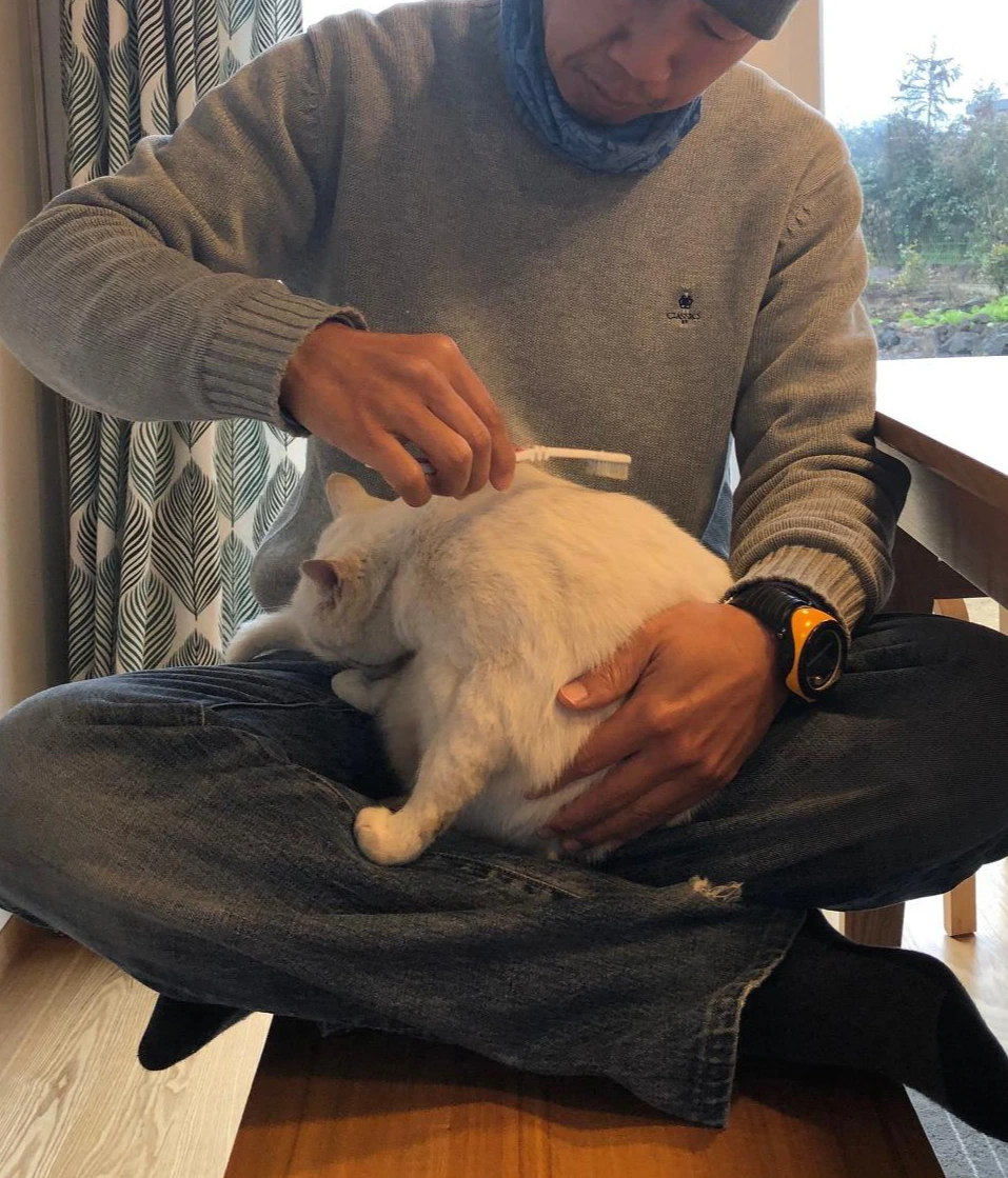 요즘 소다는 낮 시간대에는 실내에서 주로 생활한다. 아내의 고양이 털 알러지가 생각보다 심하지 않아서인지 아내가 더 적극적이다.(물론 청소도 열심히 하고 있다.) 단 식사, 배변, 운동(놀이)은 밖에서 해결하고 저녁 식사 이후에는 밖으로 내보낸다. 정해진 시간 동안 실내에 들어오다 보니 소다고 집사들도 이제 많이 적응이 된 듯하다. 요즘엔 친히 집사들의 다리에 올라 꾹꾹이로 칭찬을 해주시고, 양반 다리 위에서 잠들기를 좋아하신다. 집사들은 잠든 소다를 위해 칫솔로 그루밍을 해드리거나 조심스레 턱밑에 뭍은 꼬질꼬질한 때를 제거해 드리기도 한다.