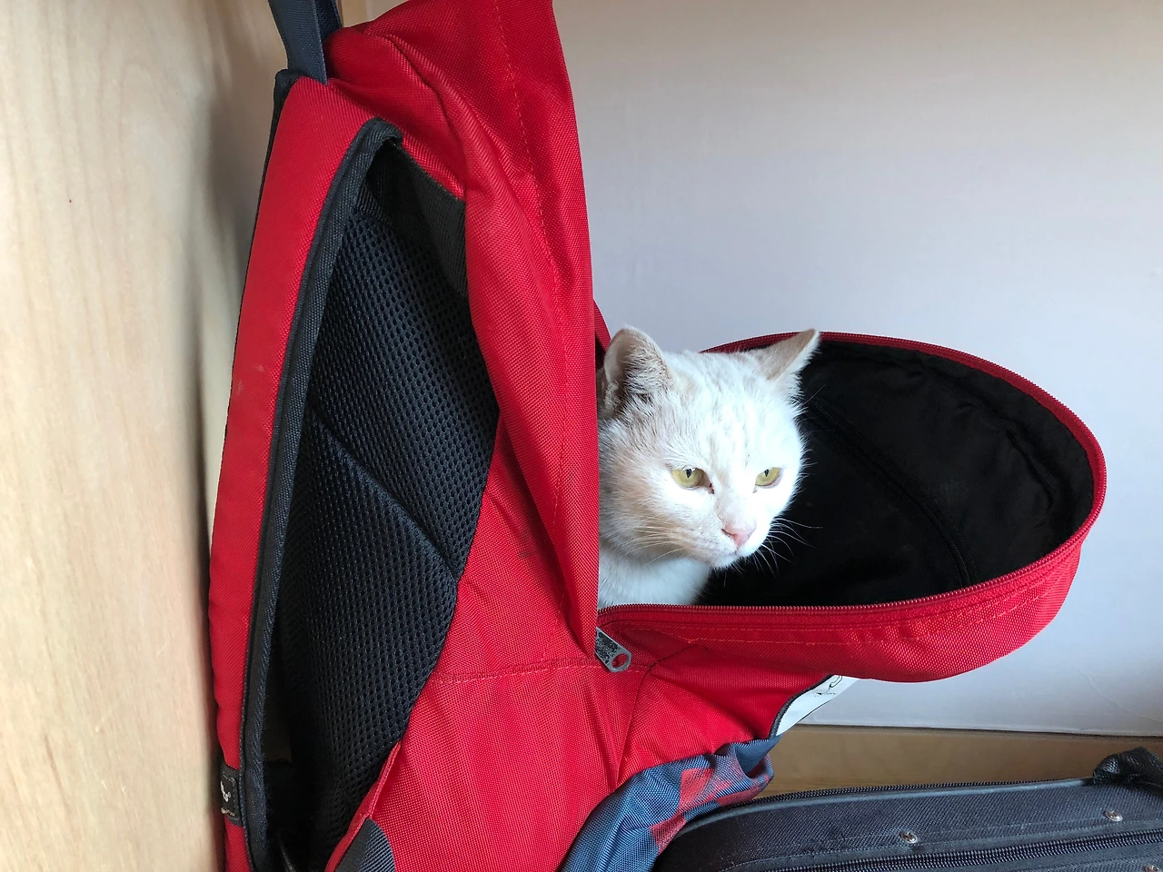 어른들이 있을 때 소다는 주로 거실에서 얌전히 잠을 잔다. 그런데 이틀 전 아이들과 소다만 남기고 잠시 도서관에 다녀왔더니 아이들이 소다의 이중 생활을 고자질해 준다. 어른이 없다는 걸 눈치챘던지 활발하게 집안 여기저기를 왔다 갔다 했다고 한다. 분리수거하려고 둔 박스에도 쏙 들어가고, 대청에 있는 흔들의자에서 놀기도 했다고 한다. 그리고 아들 방에까지 들어가서는 걸어둔 책가방 속에 쏙 들어가 있었다고 한다. 그 모습을 아이들이 두고 간 내 휴대폰으로 찍었다고 한다.