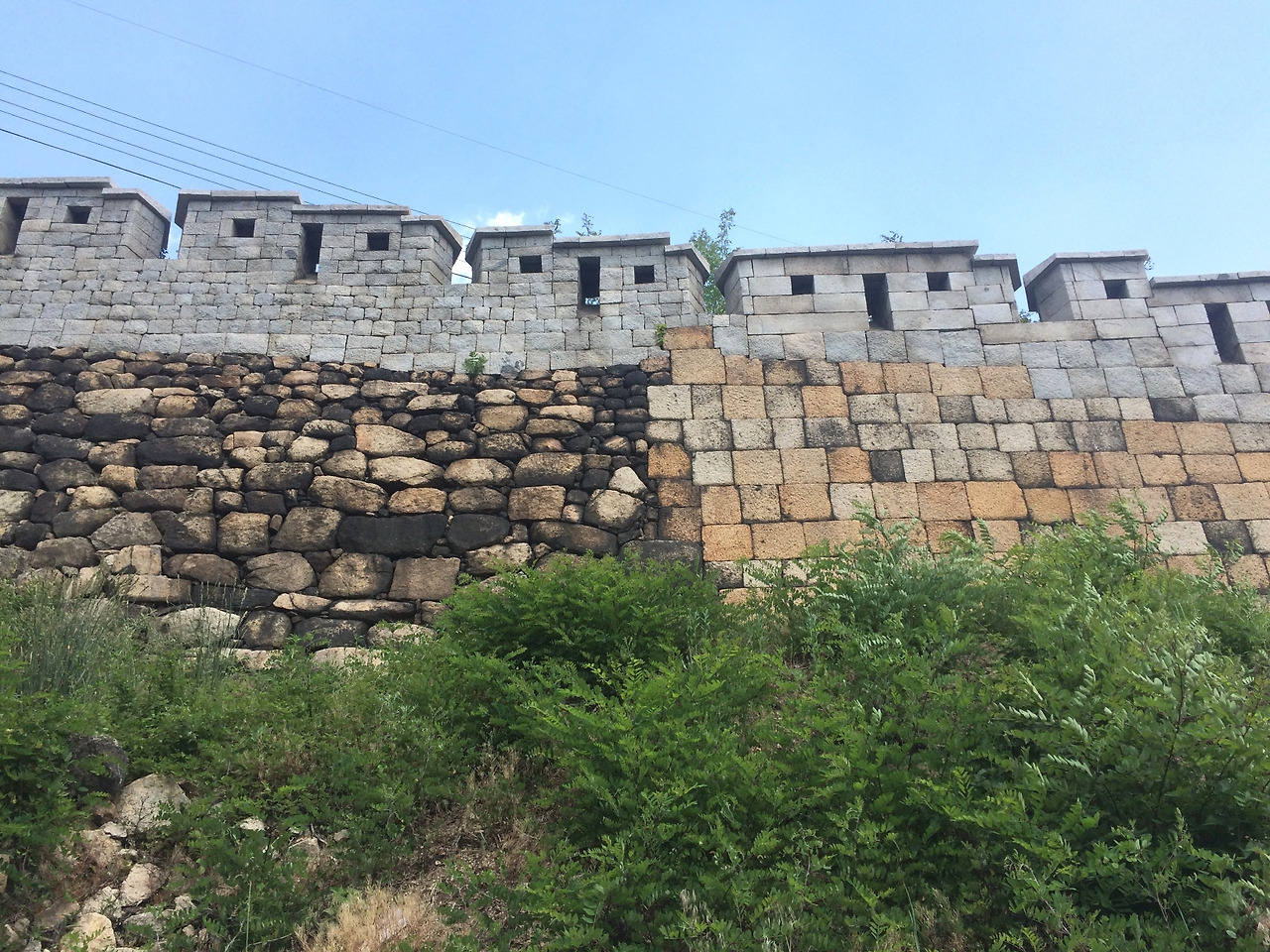 주위에서 흔한 화강암으로 축성된 성벽들, 축성된 시기에 따라 형태가 다른 모습을 볼 수 있다
