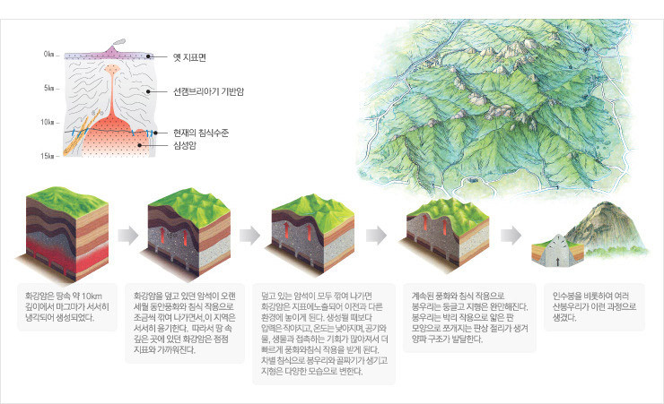 < 북한산 화강암 생성과정 및 지표노출 과정 > 출처 : 한국과학창의재단 고등학교 과학