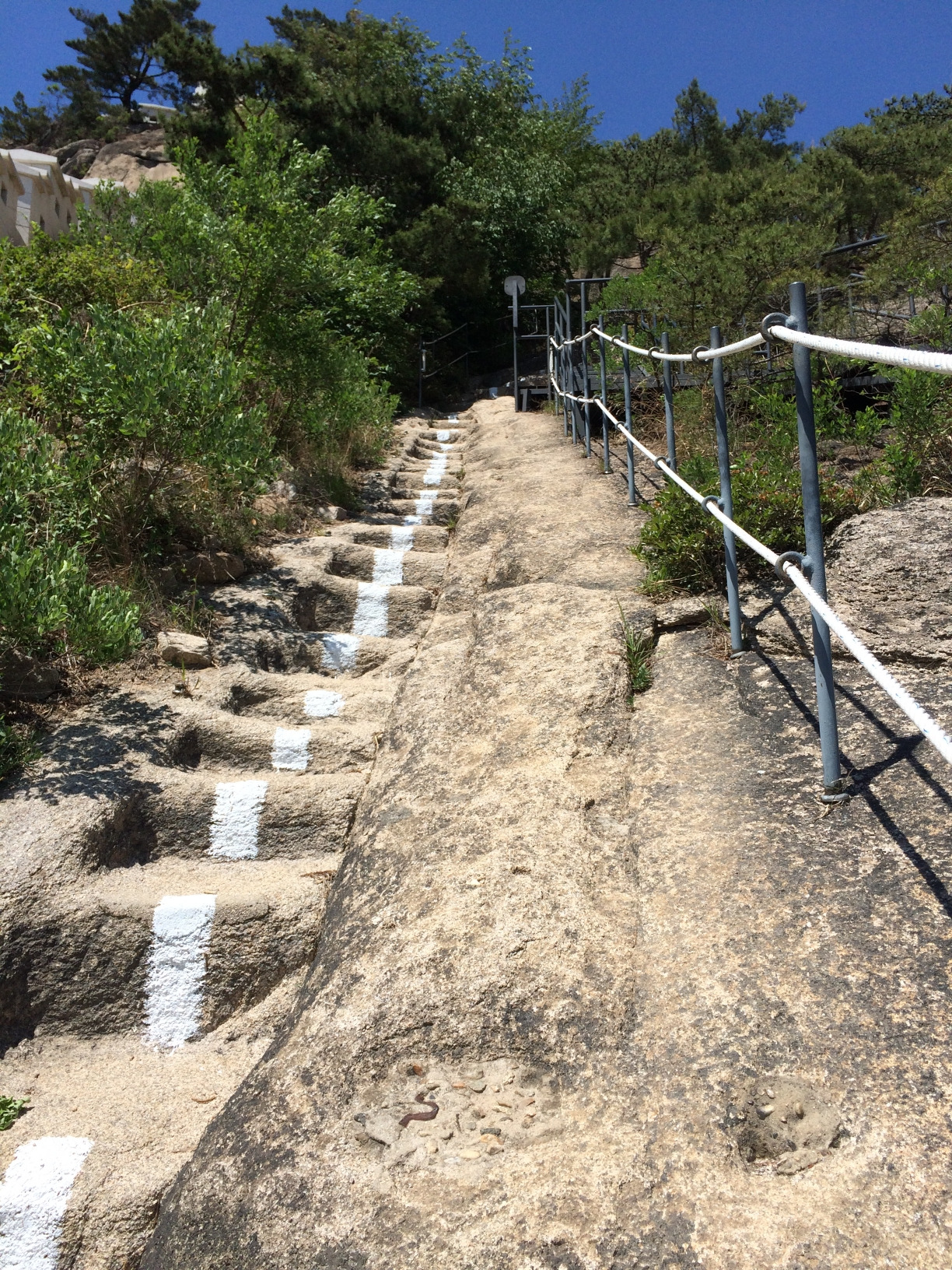 범바위를 올라가는 급경사의 계단, 화강암 암반을 깨서 계단을 만들었다