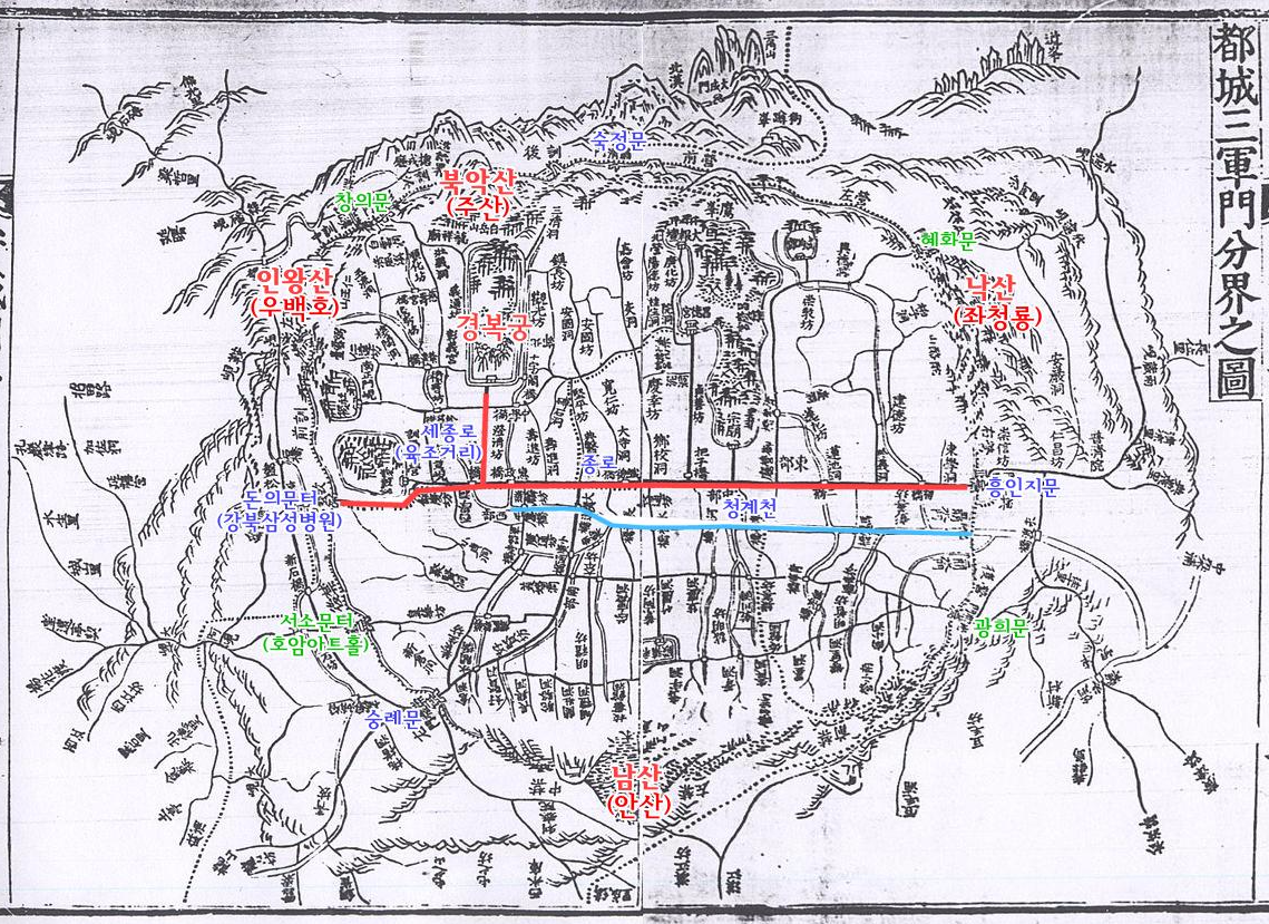 <도성삼군분계지도> 조선 영조(英祖) 27년(1751년) 제작된 수도 한성의 지도