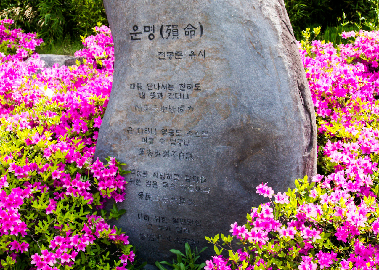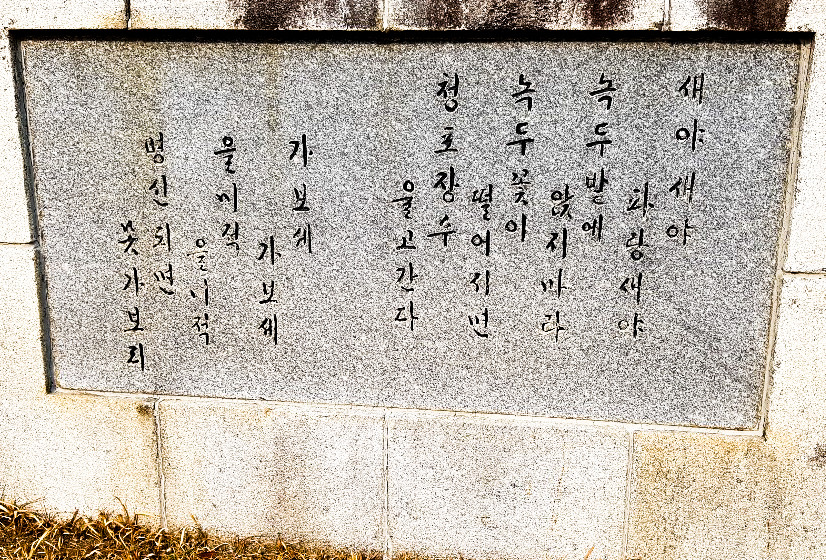 탑신 뒤 하부에는 두 노래가 새겨졌다. 서툰 듯한 한글 서체가 정이 간다. 노랫말이 처연하다. 특히 두 번째 노랫말은 갑오(甲午), 을미(乙未), 병신(丙申) 순을 따라 토속 민요조로 부른 셈이다.