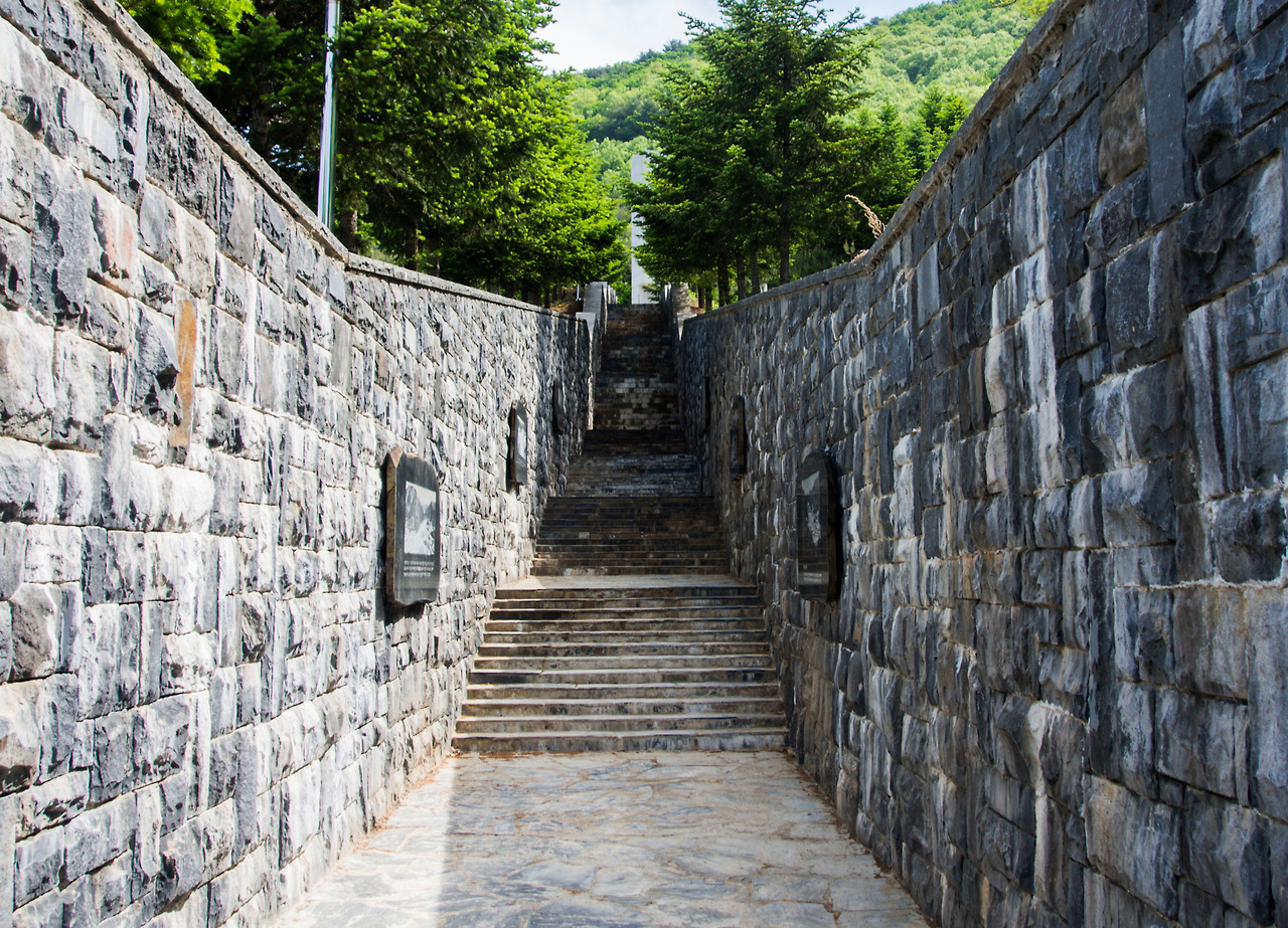 주차장을 지나 작은 개울을 건너면 성벽과 민중의 광장, 그 옆으로 돌담 사이 좁은 계단이 옥죄듯 이어진다. 모두 109단. 이름하여 "통곡의 계단"이다. 그 정점에 위령탑이 가만히 나타난다.