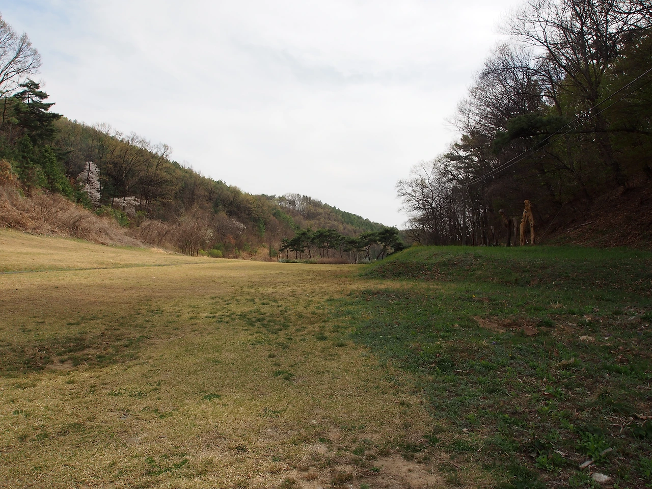 탑을 지나 언덕에 오르면 황토현 현장이 펼쳐진다. 텅 비었다. 기슭에 비틀어진 나무 장승 여럿이 뭔가 할 말이 있는지 기우뚱거린다.