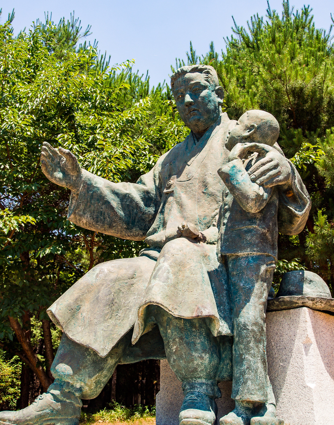 공원 내 노천극장의 객석 뒤 끝 중심에 자리하였다. 높이 1.5m 폭 1.6m 두께 1.65m의 단정한 석재 좌대 위에 1.5 등신 배 동상이다. 단순한 화강석 기단과 빛바랜 청동상은 나름 격을 지니고 있다.