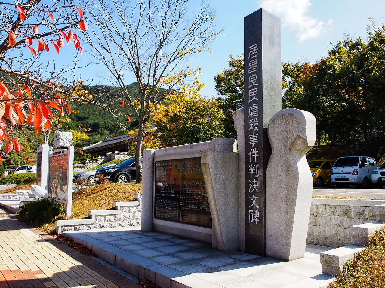 어린이 위령비는 이곳 사건 현장 인근으로, 용선사 옆 작은 언덕에 겨우 자리하고 있다. 비좁은 돌계단을 조심스레 올라가야 한다. 위령제는 추위 탓에 두 달 앞당겨 열린단다. 위령제가 끝난 10월의 작은 마당 모습은 스산하다.