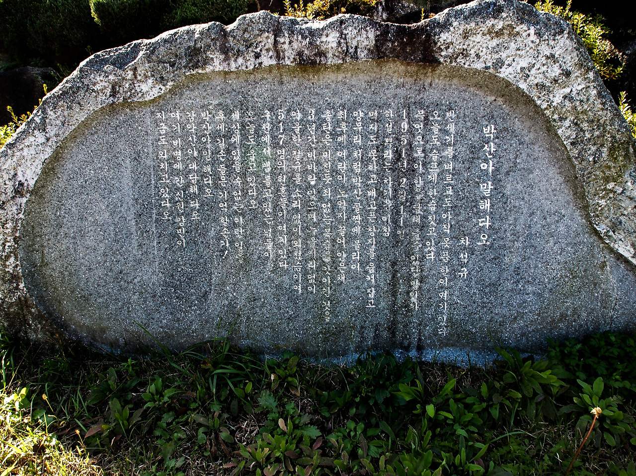 거칠게 깔아놓은 좌대와 상석이 서글픔을 더한다. 사각형 돌판은 뚜렷한데, 새겨진 시 구절은 드문드문 바래졌다.