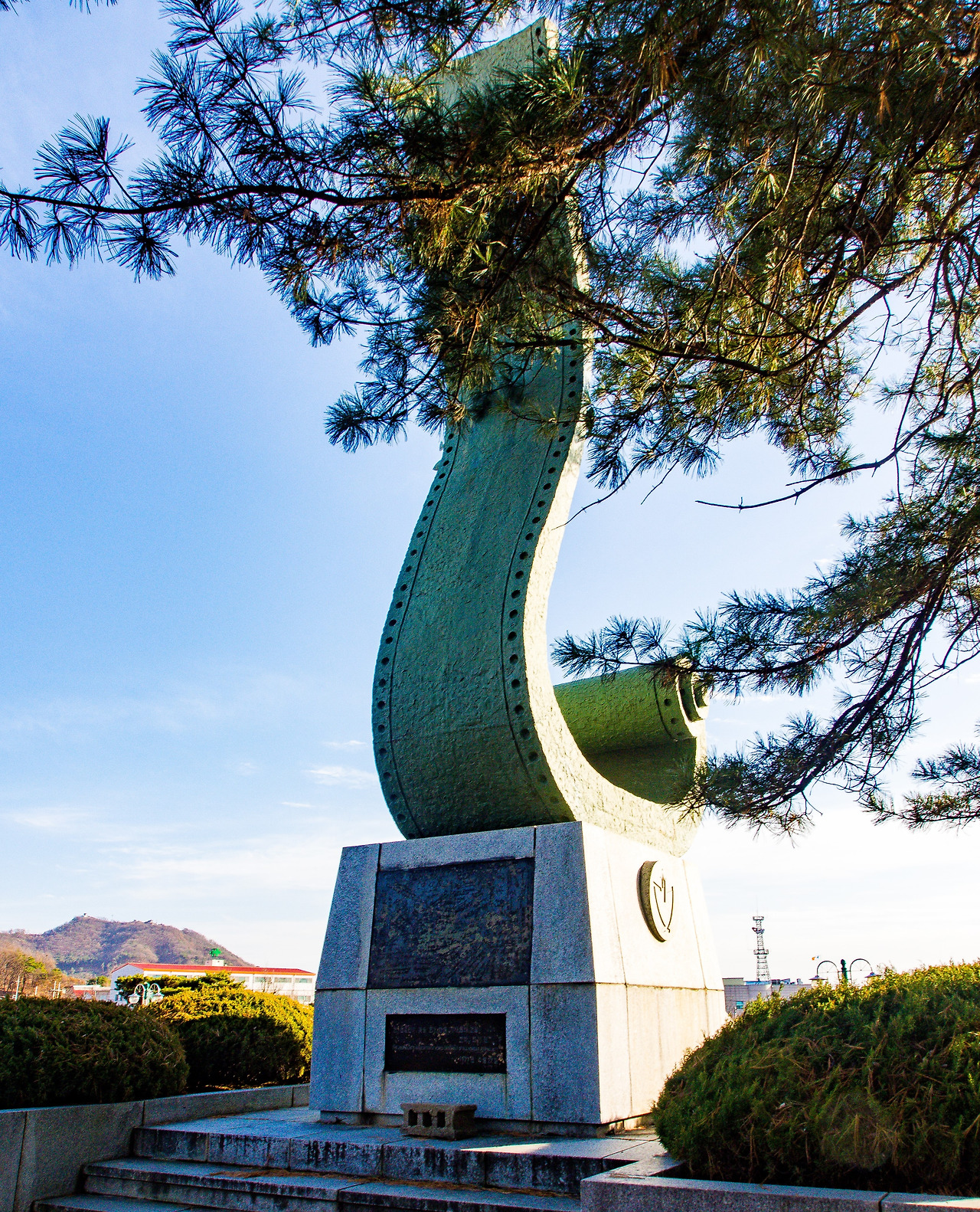 6.25 당시 종군기자들의 프레스센터였던 문산역의 평화열차가 내려다보이는 유서 깊은 취재현장이었던 통일공원 구석에 10m 높이로 섰다. 휴전 후 거의 24년이 걸렸다.