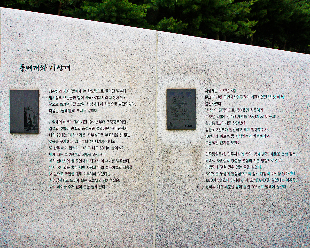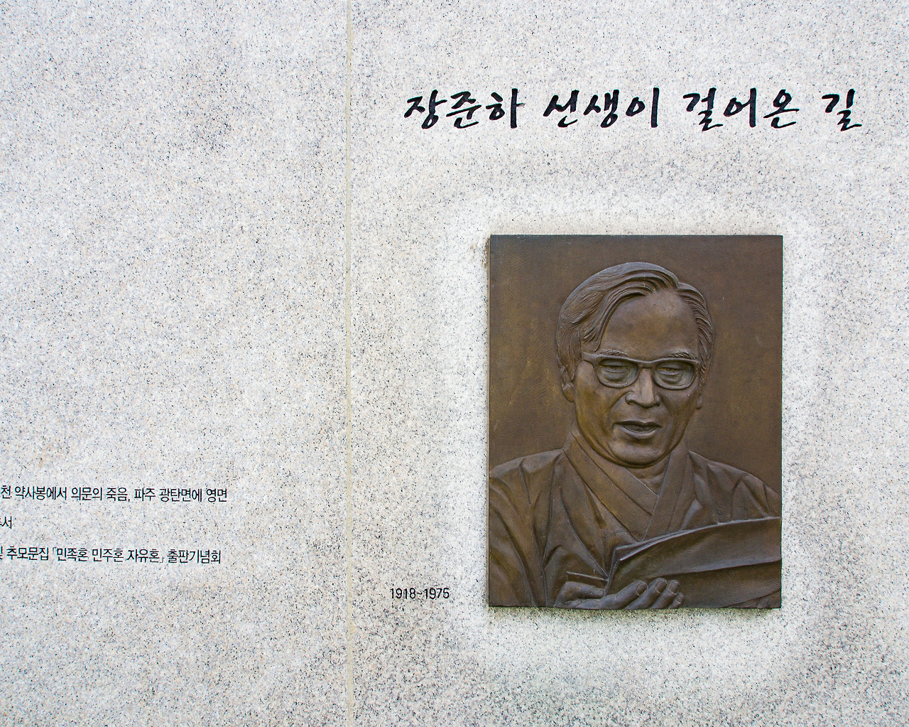 장준하 공원의 벽체 동판부조와 글 1, 2