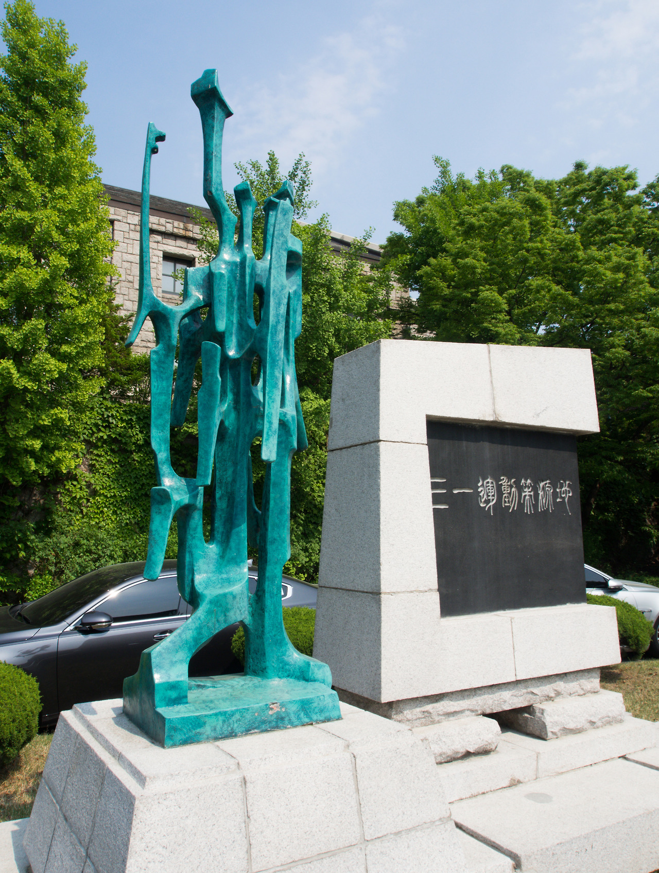 서울 종로구 "3·1 독립선언 광장" 바깥에는 이 장소를 기념하는 삼일 독립선언 유적지 조형물이 조성되었다. 독립선언서를 새긴 녹슨 곡면의 강판 조형물 자체가 거친 듯 수수한 경관 요소가 되었다.