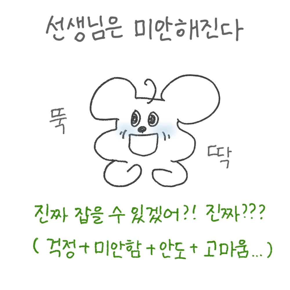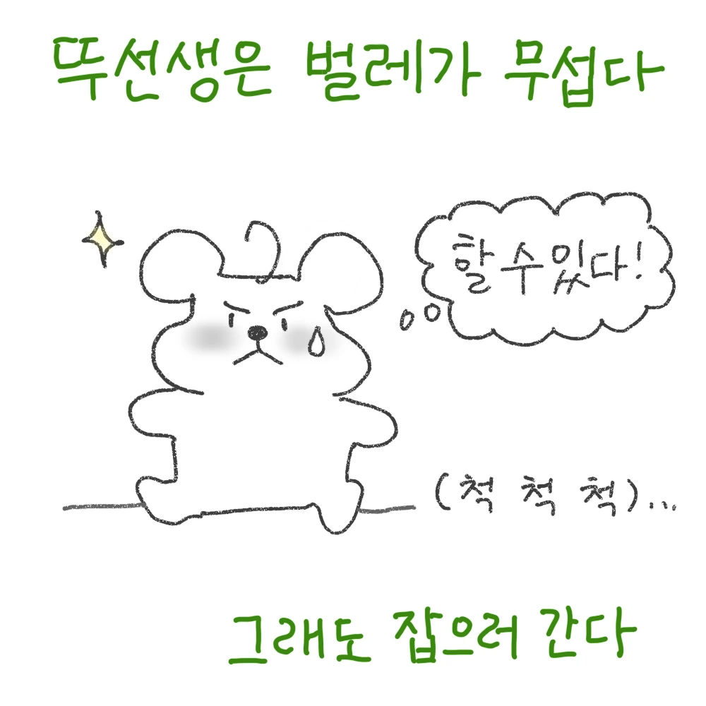 그럼에도 바퀴벌레는 너무 징그러웠다. 다행히 용감한 제자님이 있어 겁쟁이 선생님은 무사히 고비를 넘을 수 있었다.
