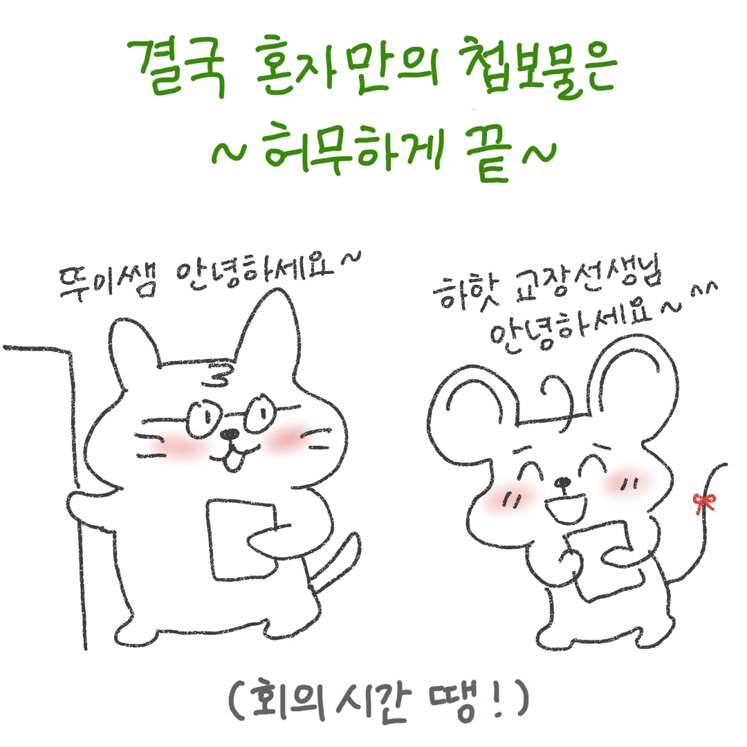 비록 교장선생님께 회의 시간에 빠듯하게 도착하는 모습은 들켜버렸지만 그래도 씰룩씰룩 올라가는 입꼬리를 주체할 수 없었다.