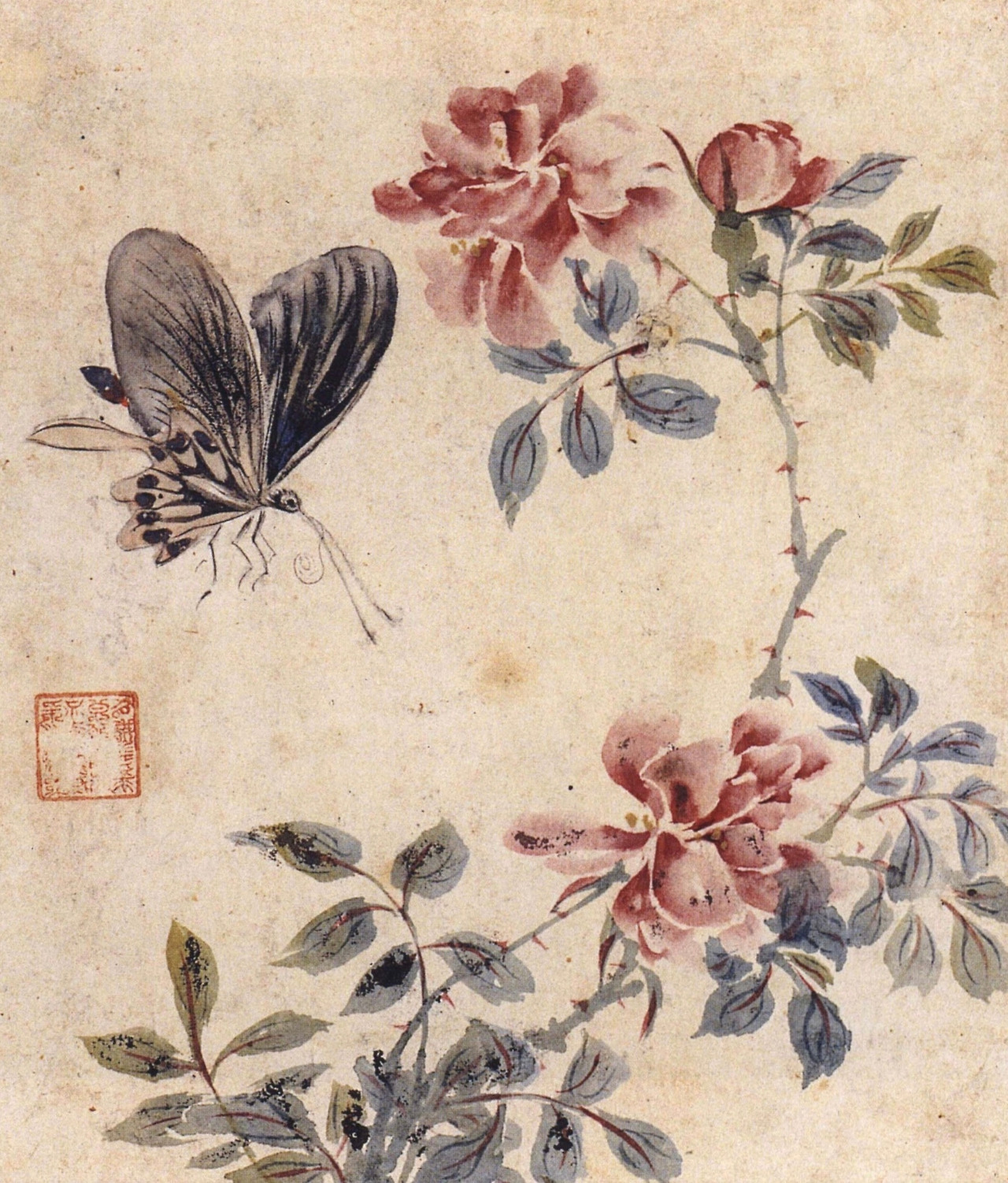 그림 속, 하얀색의 탐스러운 꽃을 자랑하는 이 장미는 ‘알바 막시마(Alba Maxima)’ 로 불린다. 오늘까지도 정원에서 볼 수 있는 가장 오래된 품종의 하나이며 매우 아름다운 향기를 자랑하는 ’고대 장미(Old Rose)’에 속한다. 서양에서 하얀 장미 하면 떠올리는 전형적인 대명사로 ‘데카메론(Decameron)’을 쓴 이탈리아의 작가 G. 보카치오가 로마의 정원을 묘사하면서 그 아름다움을 칭송한 꽃이기도 하다.