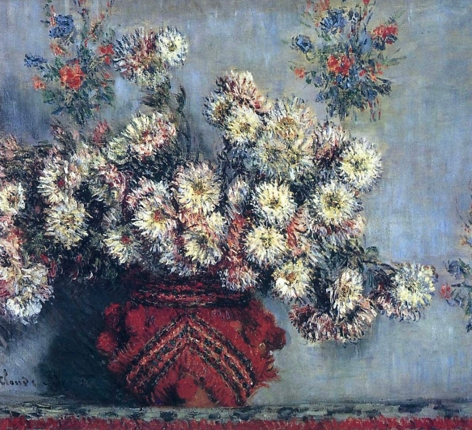 국화 역시, 동양의 신비로움을 자랑하는 당대의 대표적인 이국식물이다. 사실, 우리에게 국화는 얇고 긴 꽃잎이 여러층을 이루며 부드럽고 풍성한 형태를 만들어내며 그 자체로 충분히 아름다운 모습을 가지고 있지만, 옛부터 국화꽃이 가진 무거운 의미때문에 꽃으로서의 화려함을 충분히 드러내고 있지 못하기도 하다. 그러나 19세기 인상주의 화가들에게는, 특별히 우키요에의 대표작가인 호쿠사이의 국화 그림을 열렬히 추종하던 이들에게는, 꽃 자체의 아름다움을 넘어 일종의 신비로움을 가진 자연으로 이해되며 그려지곤 하였다.