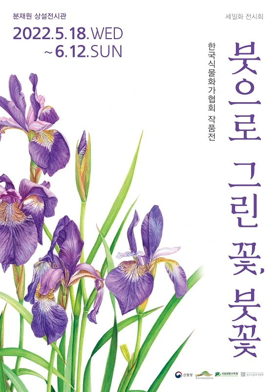 4월 초에서부터 꽃을 피우기 시작하여 5월까지 볼 수 있는데, 꽃잎의 하늘하늘한 아름다움은 화선지에 그린 수목화의 풍경과 맞닿아 있기도 하다. 전통적으로 붓꽃이 글을 잘 쓰고 그림을 잘 그리게 해 준다는 의미를 가져 유생들이 벼루 옆에 꽃을 꽃아두는 풍습이 있었다고 하니, 과연 아이리스와 수목화의 그림이 의미 있다 하겠다. 비라도 한번 내리면 이겨내지 못하고 꽃이 떨어지며 시들어버리는 특성은 과연 수목화로 담담하게 받아낼만한 성격이며, 활짝 핀 붓꽃의 소중함을 더하게 한다.