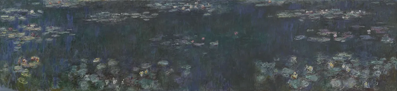 이렇게 탄생한 수련 연작 시리즈는 총 250여점이나 된다! 초기의 그림은 연못과 정원 전체를 담고 있지만, 시간이 지날수록 수련에 대해 보다 집중하게 되면서 후기작에는 연못의 수면과 수련(가끔은 배경이 되는 수양 버들의 늘어진 잎) 정도만 등장하게 된다. 특히, 오랑주리 미술관에 전시된 17미터!가 넘는 수련 그림은 경계를 잃어 처음과 끝을 알 수 없는 연못안의 경관이 몽환적으로 표현되어 있다.