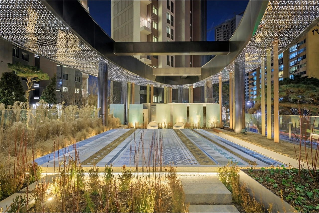 김아연 교수는 마지막 Meadow 시리즈로 공동주택의 진입 정원에 작품 ’Meadow Carpet’을 조성하였다. 특히, 이 작품은 지극히 사적이며 동시에 공적인 공동주택의 진입부에 타일로 꾸민 평상을 만들고 그 하부를 LED 조명으로 둘러 마치 바닥에서 떠 있는 듯한 신비로운 느낌을 더하고 있다.