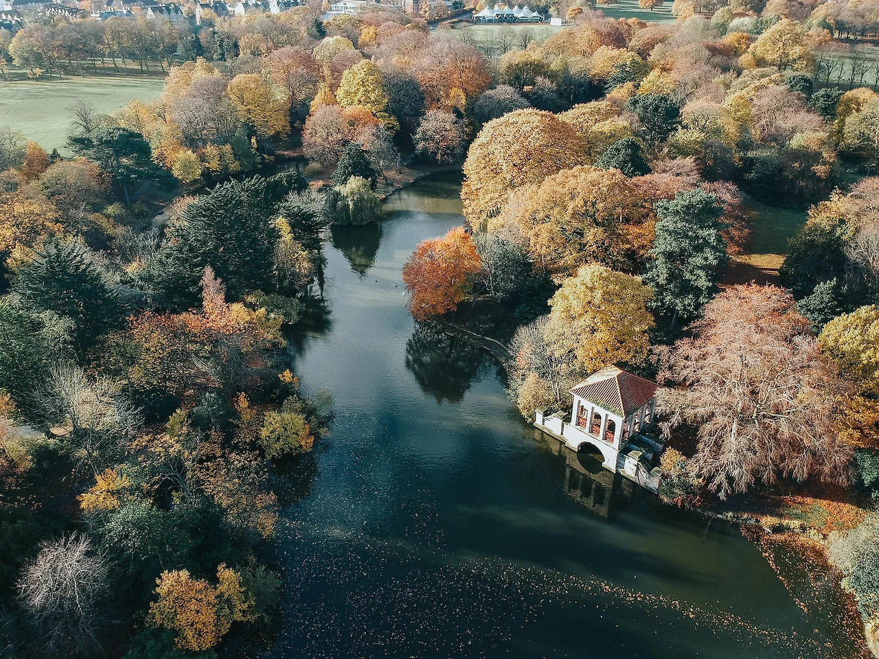 공원은 당시 영국에 유행하던 풍경식 정원(픽쳐레스크 스타일)을 표방하고 있어 호수와 다리, 인공섬과 정자 등이 자연스럽게 읽히도록 계획되었다.