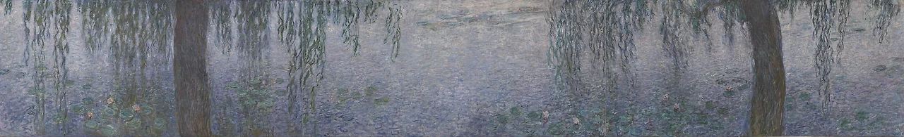 이렇게 탄생한 수련 연작 시리즈는 총 250여점이나 된다! 초기의 그림은 연못과 정원 전체를 담고 있지만, 시간이 지날수록 수련에 대해 보다 집중하게 되면서 후기작에는 연못의 수면과 수련(가끔은 배경이 되는 수양 버들의 늘어진 잎) 정도만 등장하게 된다. 특히, 오랑주리 미술관에 전시된 17미터!가 넘는 수련 그림은 경계를 잃어 처음과 끝을 알 수 없는 연못안의 경관이 몽환적으로 표현되어 있다.