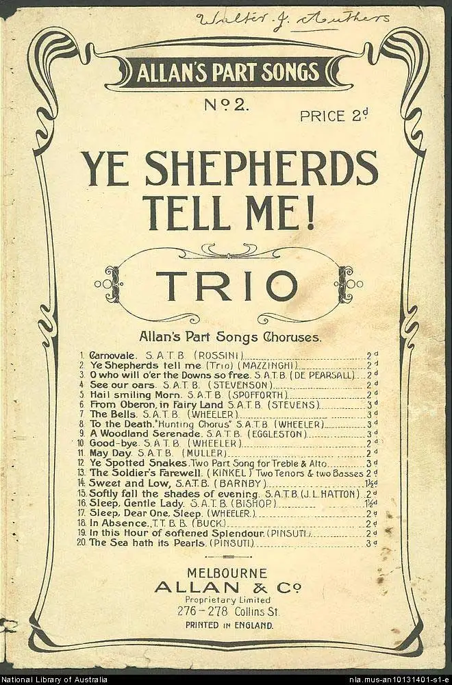 < 조셉 마징기의 Ye Shepherds Tell Me 악보 >