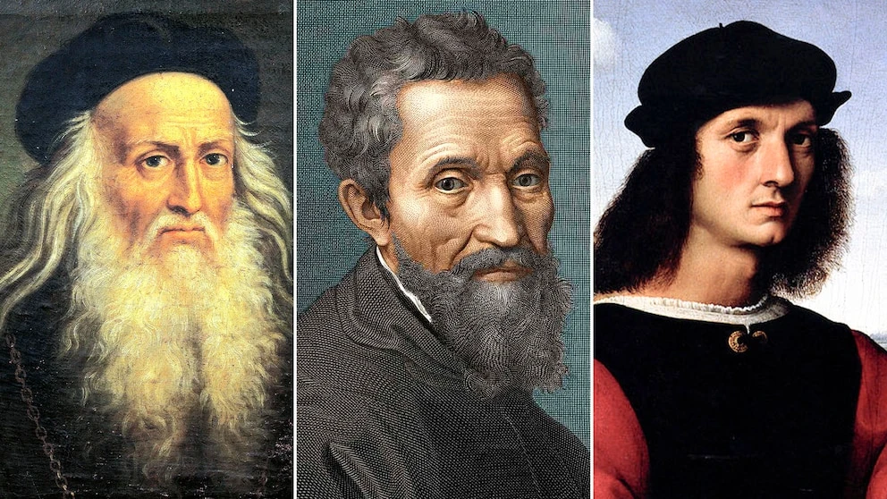 서양 미술사 전체를 통틀어 가장 유명한 삼인방이라 해도 무방할 ‘레오나르도 다 빈치’ 와 ‘미켈란젤로 부오나로티’ 그리고 ‘라파엘로 산치오’ 는 전성기 르네상스의 3대 거장이다. 비록 서로 화풍을 나누고 교류하는 의기투합의 관계는 아니었지만, 각자 다른 방식으로 아카데믹 서양 미술을 완성시킨 동시대의 인물들이다. 베키오 궁전의 벽화에 서로 다른 전투 그림을 그리며 경쟁했던 레오나르도와 미켈란젤로가 길거리에서 서로를 헐뜯으며 말싸움했다는 일화는 흥미롭게 회자된다. 라파엘로는 이런 두 거장의 작품들을 보면서 각각의 좋은 점만을 취하여 최적의 비율을 찾아내려 애썼다고 하니, 상당히 흥미로운 관계의 예술가들이다.