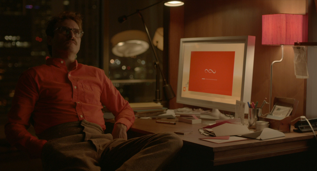 이 영화는 전체적으로 파스텔톤과 붉은 계열이 도드라진다. 테오도르의 붉은 셔츠, 분홍빛이 감도는 벽과 조명, 뿌연 회색 도시와 그 안의 따스한 색감. 이 색들은 따뜻하고 편안하지만, 이상하게도 공허하고 외롭다. 그 이유는, 이 따뜻한 색채들이 ‘사람 사이’의 온기에서 온 것이 아니라, ‘부재’를 감추기 위해 세팅된 온도처럼 느껴지기 때문이다.